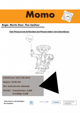 Am 16. und 17. Juni gibt es die Möglichkeit, eine Produktion von Schüler_innen der UniverSaale zu sehen, die ganz wunderbar zu den Achtsamkeitstagen passt: An beiden Tagen wird jeweils ab 19 Uhr in der Kulturkirche Löbstedt das Stück “Momo” aufgeführt.