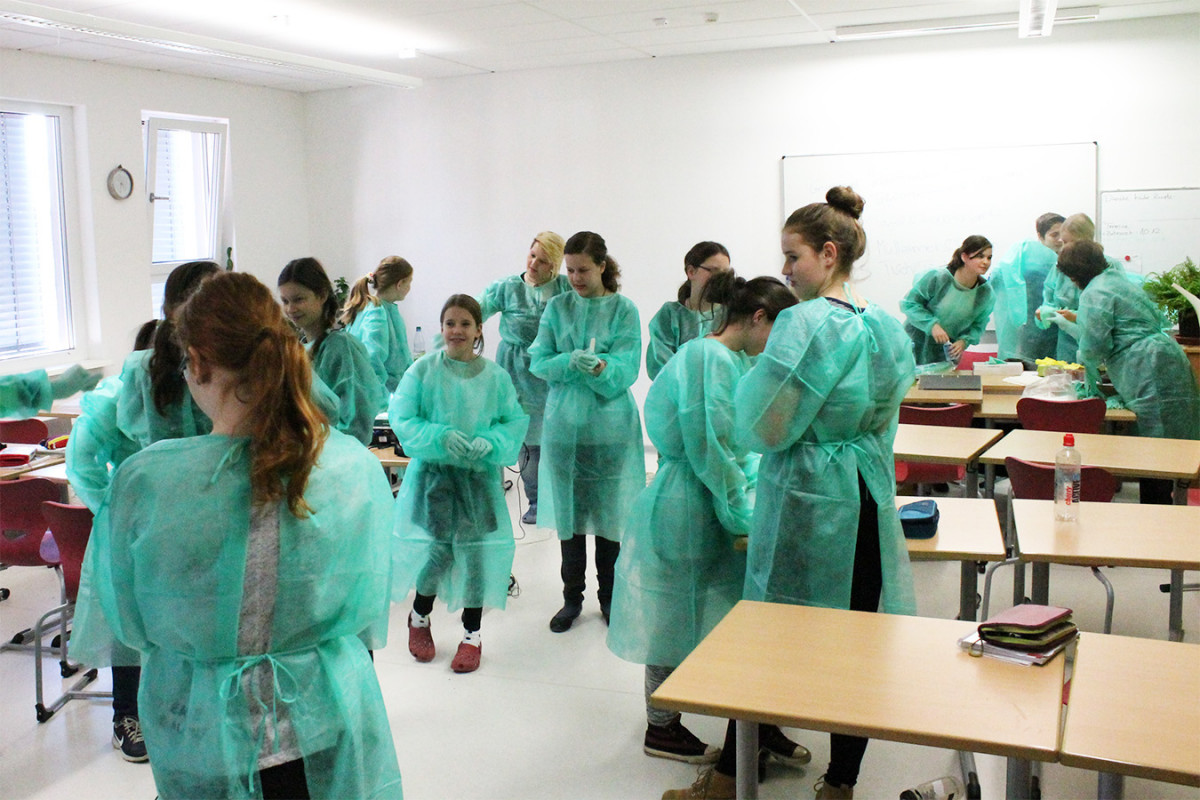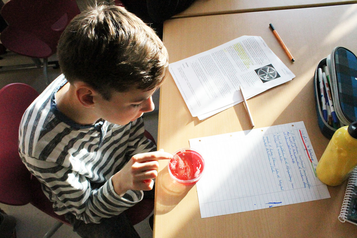 Anfang Dezember unterrichteten drei Schüler_innen des 10. Jahrganges in der Stammgruppe VI der Klassenstufe 7 & 8. Sie führten drei Projekttage zum Thema „Bakterien und Blutagar“ im Rahmen ihrer Projektarbeit durch. Die Schüler planten die Einheiten der Projekttage selbstständig und mussten sich für 7 Unterrichtsstunden in den Alltag eines Lehrers hineinversetzen. Die Schüler_innen nahmen am ersten Projekttag mehrere „Abklatsche“ von verschiedenen Dingen im Stammgruppenraum, z.B. Fensterbrett, Stuhl, Tisch oder Tafel. Die Abklatsche worden mit Agarplatten durchgeführt, der als Nährboden für die Bakterien genutzt wurde. Die Platten wurden anschließend für 24h in einem Brutkasten bei 37°C eines externen Labor gebrütet. Nach diesen 24h konnte man verschiedene Bakterienarten und Kolonien erkennen, die die Zehntklässler_innen dann zählten und auswerteten. Das Ergebnis stellten Sie der Stammgruppe vor. Dies diente dazu, denn Schülern zu zeigen, an welchen Orten im Stammgruppenraum viele Bakterien wachsen und wo nicht. Aber zugleich auch, dass Hygiene sehr wichtig ist. Die gute Nachricht der Untersuchung: Es wurden keine bösartigen Bakterien gefunden.