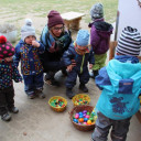 Ganz aufgeregt kamen die Kinder an diesem Morgen in die Kita. Es hieß, der Osterhase kommt. Doch nichts war zu finden – keine bunten Eier, keine leckeren Süßigkeiten oder ähnliches. So gingen die großen Kinder ins Naturparadies und die kleineren Kinder zum Osterspaziergang in die nähere Umgebung, um das Osterhäschen zu suchen. Als alle zurück waren, gab es doch noch eine große Überraschung in unserem Garten – der Osterhase hat für jedes Kind ein kleines Nestchen vorbereitet und ganz viel in unserem Garten versteckt. So hatten die Kinder viel Freude beim gemeinsamen Suchen.