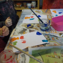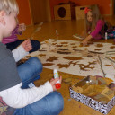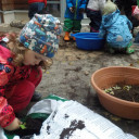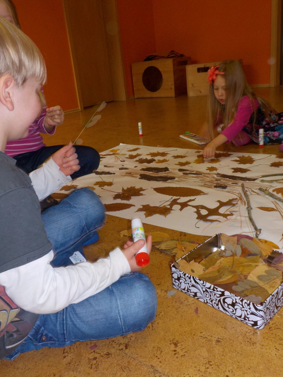 “Der Herbst, der Herbst, der Herbst ist da, er bringt uns Spaß, hei hussassa!” Unser Herbstfest begann am Morgen mit Backen von leckeren Kürbiswaffeln die wir gleich im Anschluss zur Obstpause essen konnten. Danach ging es mit einem großen Morgenkreis weiter, wo wir über den Herbst gesprochen und gesungen haben. Von dort konnten wir uns in verschiedene Angebote einwählen: Apfelmus zubereiten, Kartoffeldruck, ein Bild mit Naturmaterial legen, Tiere aus Blättern gestalten und im Garten samen säen. Wir hatten einen tollen Tag!