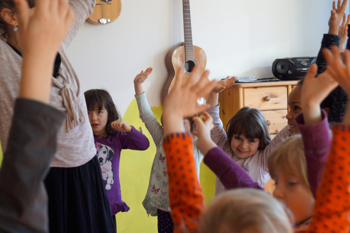 Es trafen sich in der Woche vom 13. bis zum 17. Februar alle 35 Vorschulkinder unserer drei Kitas : Pi mal Daumen, Schwabenhaus und BiLLY. Die Kids konnten sich zu Beginn in eines von drei Themen, wie Percussion, künstlerisches Gestalten und Musik und Bewegung einwählen. Eine Woche lang probierten sie sich aus und bekamen einen Einblick in die Grundlagen.