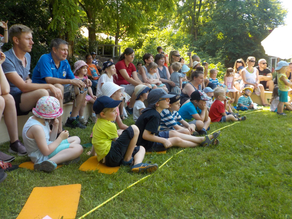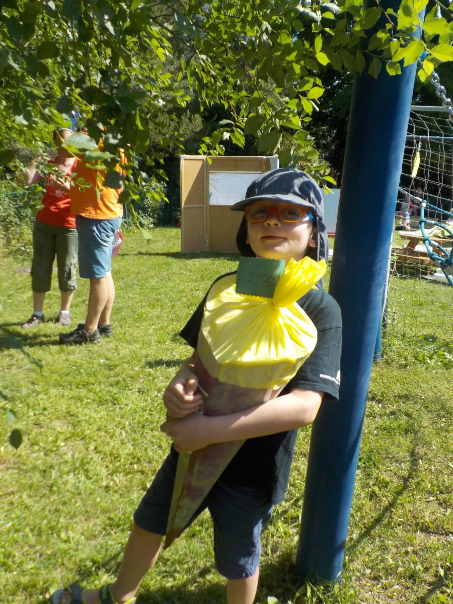 At the 26th of June we were saying goodbye to our pre-schoolers. The day begun for those children with a trip to the Jena Imaginata, where they spent all day experimenting and being fascinated by many different Things that combines science and adventure. While the pre-school children have been away, we who were still in the kindergarten got plenty of things to do: We were decorating the garden and crafting little Zuckertüten to decorate the tables and we prepared a special afternoon snack, so we could welcome our friends back to celebrate them. In the afternoon the older children and Karin did a little program for the rest of us and the parents, which showed a play of the story of the very hungry caterpillar. After that the pre-schoolers finally could harvest the Zuckertüten from the Zuckertütenbaum, which they have been watered patiently for weeks. They have been really proud of the results of their ambitions. In the evening the parents organized a barbecue to give the day a chatty and cosy ending. This was a nice and exciting day for all of us!