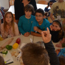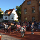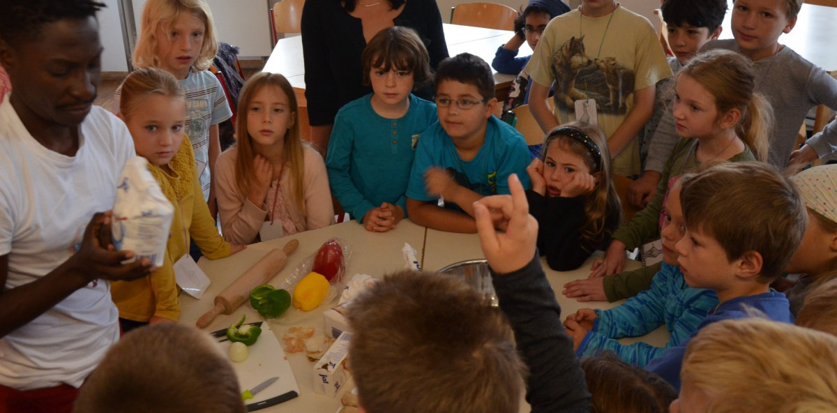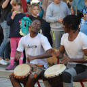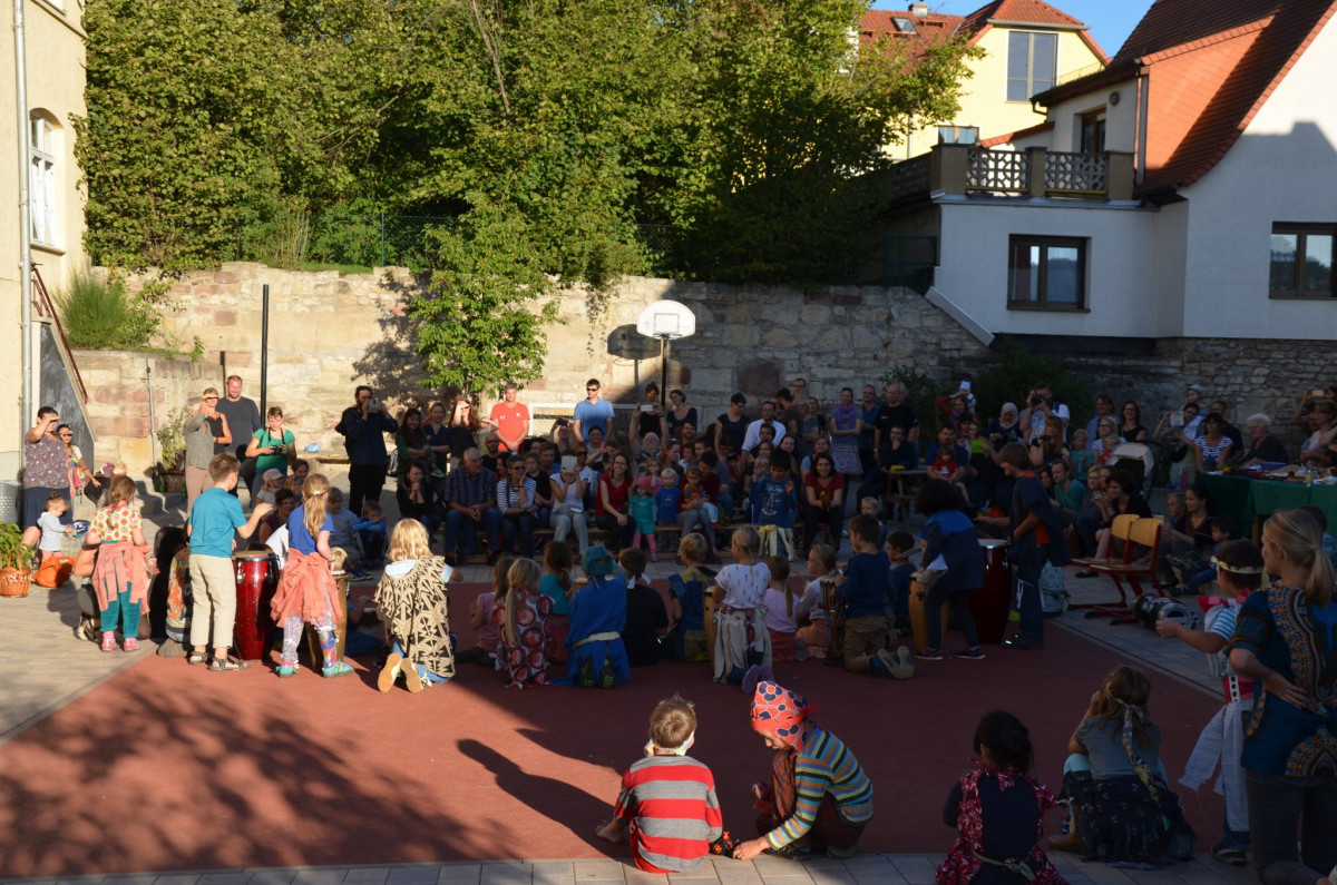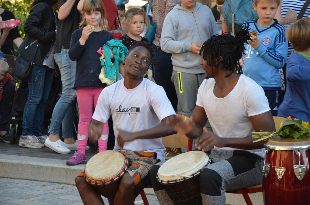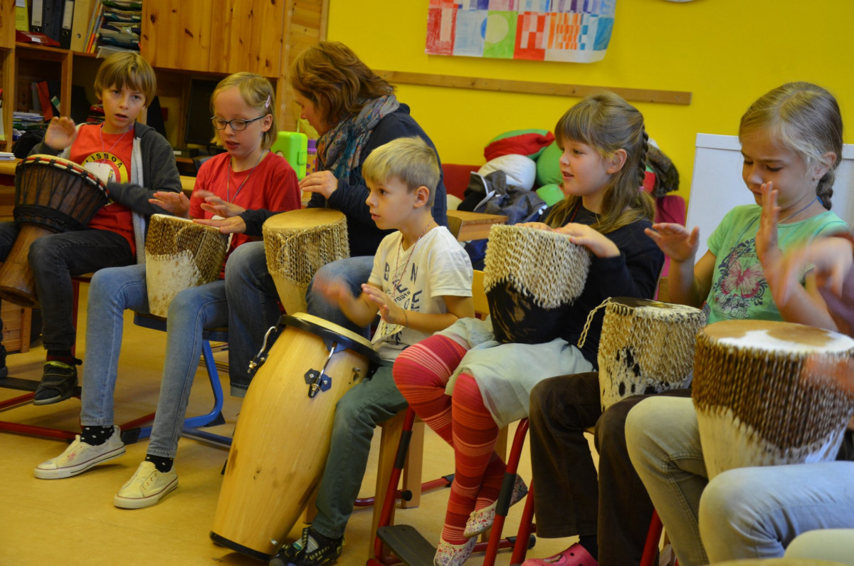 „One, two, three, four …“ ertönten vier Tage lang afrikanische Rhythmen aus dem Bewegungsraum und dem Sonnensteinraum der SteinMalEins Grundschule in Lobeda. In der letzten Septemberwoche waren jeden Vormittag alle Kinder mit Eva aus Deutschland, Jonas und Michael aus Uganda in Bewegung um etwas von Afrika zu erfahren – zu erleben. In drei Gruppen wurde intensiv ein Stück mit Kongas und Bongos und eine Tanzchoreografie eingeübt. Außerdem durften alle nach original afrikanischem Rezept Chapati mit Bohnen kochen und sich Gewänder und Röcke schneidern. Von Eva erfuhren die Kinder in kurzen Filmsequenzen etwas über Uganda und die „EWAKA“- Stiftung, welche sich in der Hauptstadt Kampala um Straßenkinder kümmert. Kurzfristig ergab sich dieses Projekt mit dem Verein der deutschen Kinder- und Jugendförderung, welches jedoch langanhaltend in absolut positiver Erinnerung bei den Kindern, Pädagogen und Eltern bleiben wird – vor allem wegen des gelungenem Abschlussfestes. Bei diesem präsentierten die Gruppen ihre eingeübten Trommelstücke und Choreografien. Vielen Dank an die Eltern für ihre Spendenbereitschaft und das leckere Buffet!