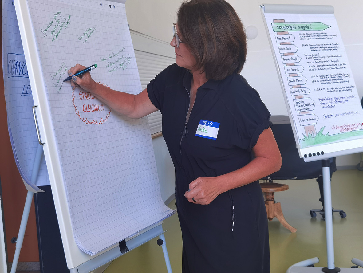 Das Besondere an diesem Format: Der Tag lebt von aktiver Beteiligung, vom gemeinsamen Austausch, vom Nachfragen, vom eigenen Statement formulieren und vor allem davon, sich aus der Fülle der Anregungen für sich und/oder das eigene Team genau die Impulse mitzunehmen, an deren Stelle man selbst gern weiterlernen möchte.