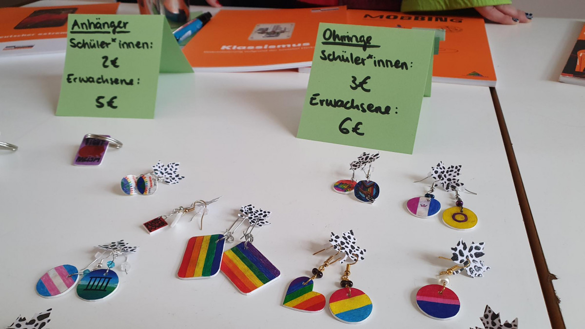 Am 25.3. hat die Demokratie AG anlässlich der Internationalen Wochen gegen Rassismus eine Aktion in den Pausen an der UniverSaale organisiert. Es wurde im Vorfeld politischer Schmuck gebastelt, der zum Verkauf angeboten wurde. Des Weiteren hatten sich die Mitstreiter*innen der Demokratie AG verschiedene Aufgaben für eine digitale Rallye überlegt. Mit Hilfe von iPads waren alle Schüler*innen aufgerufen, Fragen zum Thema Antirassismus-Arbeit und Stärkung von Toleranz & Vielfalt zu lösen. Sehr beliebt waren die »HotDogs für Vielfalt« und andere Leckereien, die zum Verkauf angeboten wurden.