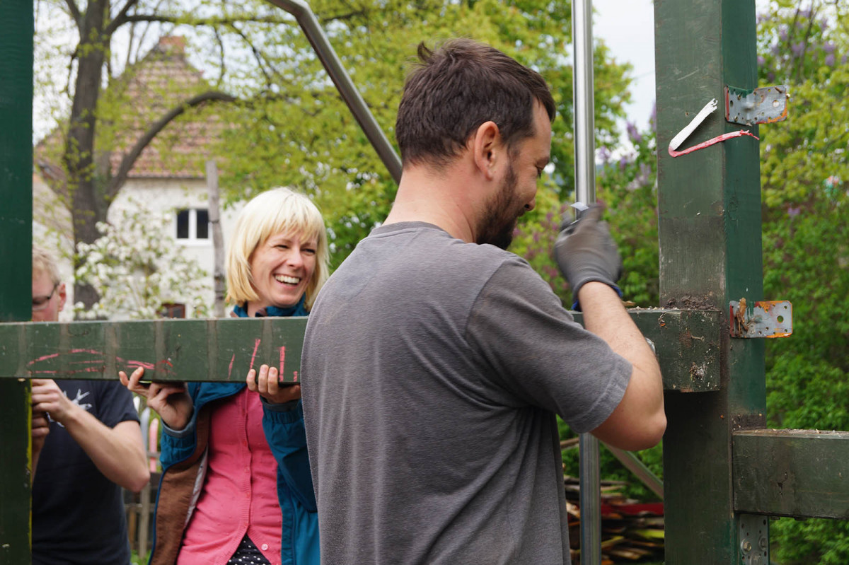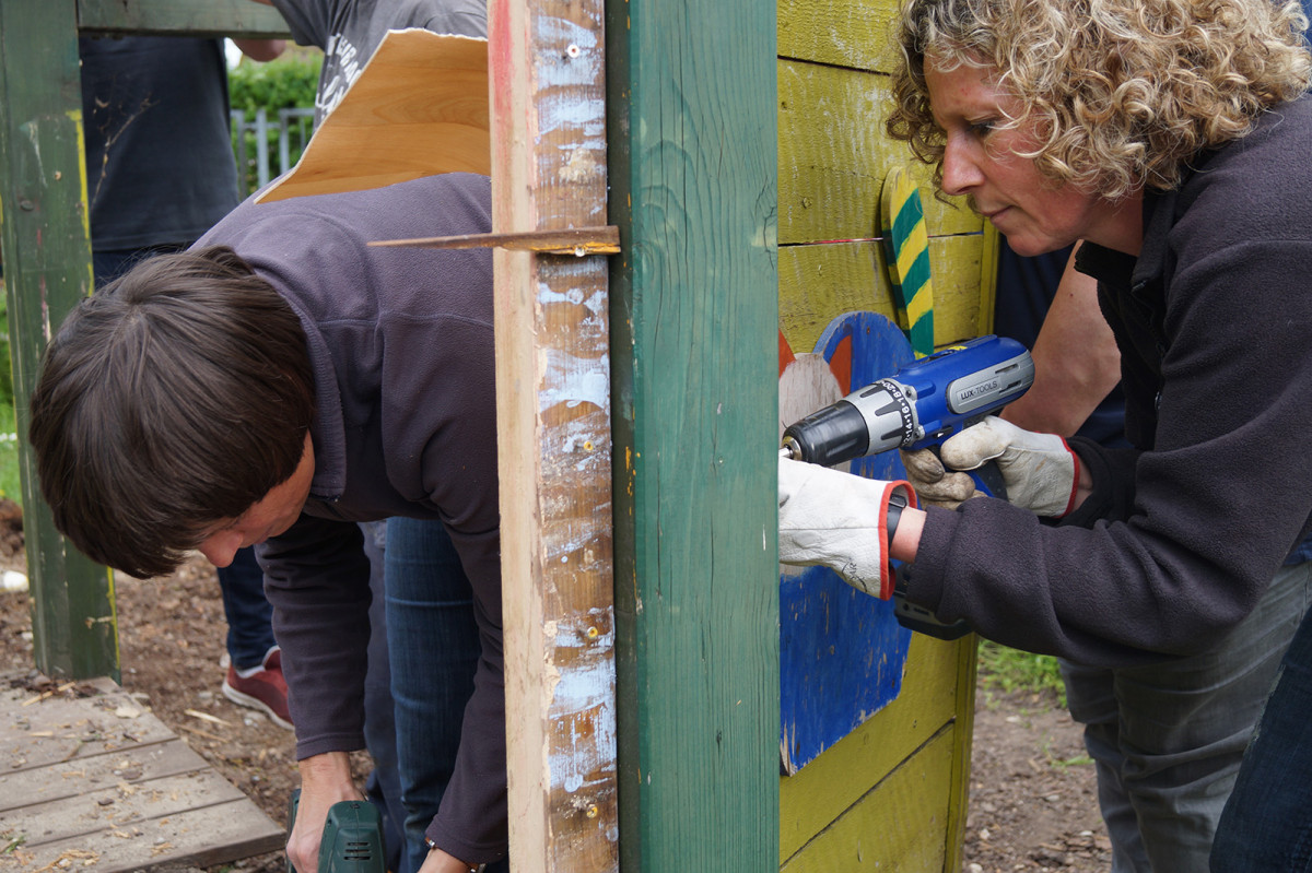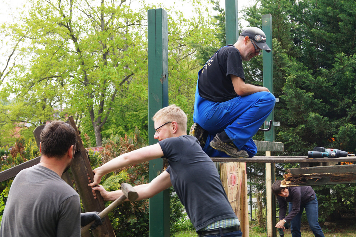 Vor 10 Jahren wurde unser Piratenschiff mit Kindern und Eltern entworfen und gebaut. Nach langer Zeit auf hoher See ist das Holz marode. Am 03.05.16 wurde es von vielen flinken Händen zurückgebaut. Nun gibt es Raum für Neues. Was genau den gewonnenen Platz füllen wird, werden wir auf uns zu kommen lassen. Unsere neue Bewegungsbaustelle sucht noch ein schattiges Plätzchen. Vielen Dank allen die mitgeschraubt, abgerissen, getragen und gelacht haben.