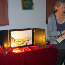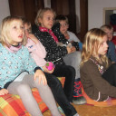 Zur Premiere öffneten sich langsam die Türen des Kamishibai-Erzähltheaters und die Kinder schauten gebannt auf das erste Bild. Die Bilder fesselten die Aufmerksamkeit der Kinder und unterstützten Uta in ihren Erzählungen. Das „bildgestützte Erzählen“ macht bereits aus jüngeren Kindern eifrige und konzentrierte Zuhörer – auch über längere Erzählphasen. Die Kinder haben die Erzählerin immer im Blick. Sie verpassen keine Ihrer Gesten oder Gesichtsausdrücke.