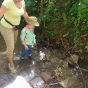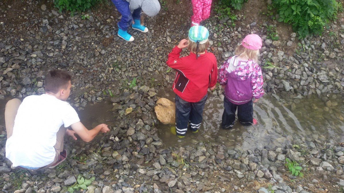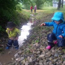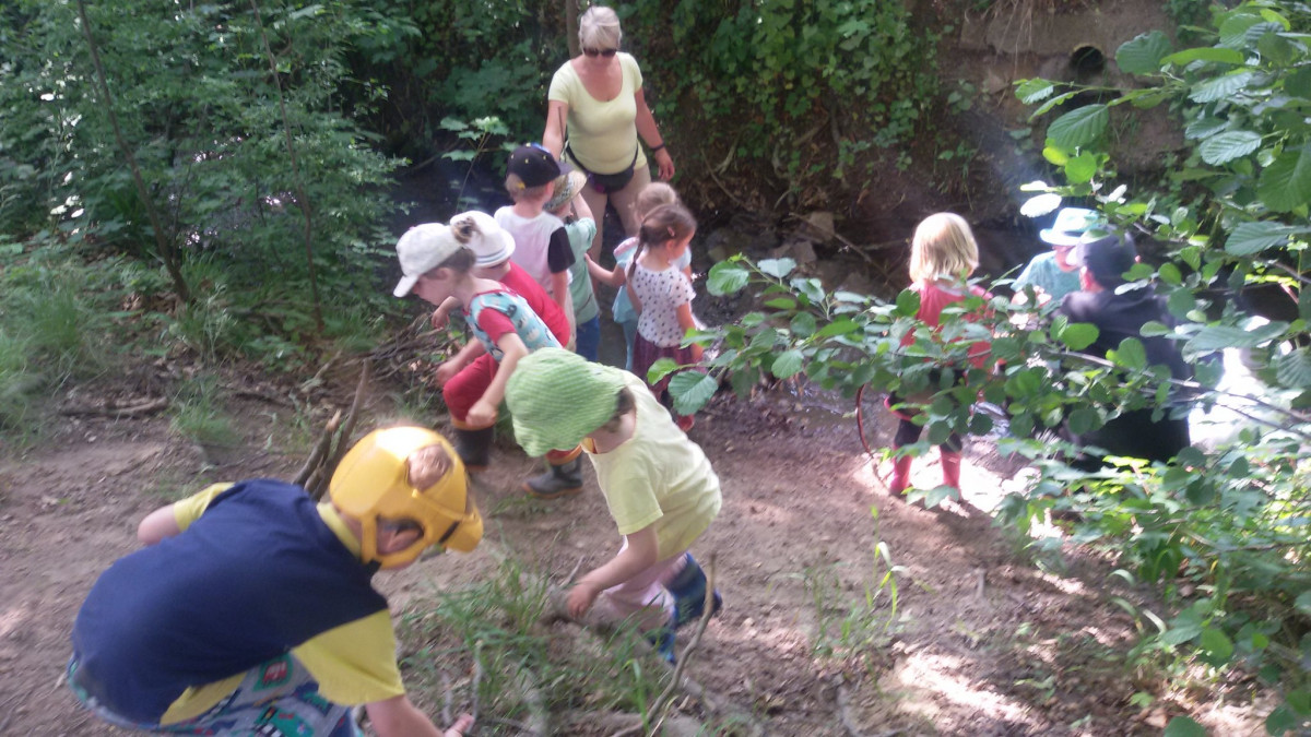 From 28th of may until the 8th of June we had the nature weeks in BiLLY kindergarten. That means that each day, a large group of children went up to the forests and streams around our building. During nature week we went to the Ammerbach stream near the kindergarten. There were lots of stones by the little river and the children built a dam to change the flow of the water. Stones were placed appropriately and the children kept their balance wading through the water in there waterproof clothing. The water was cool and refreshing after all the hot weather we have had. Some of the children emerged with dry feet and some with wet socks depending on the amount of exploring they did. There was a little chat afterwards about flow dynamics and if the water stopped if there was more water and how high the water was. Upon our return to kindergarten the children had the opportunity to do a drawing of themselves in the forest and what they had experienced.