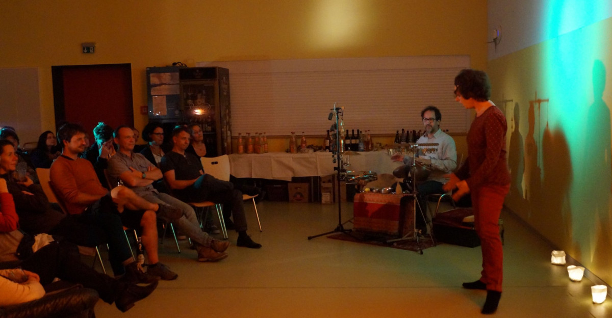 Die Erzählerin Antje Horn nahm uns mit auf eine Reise nach Afrika. Sie erzählte drei Geschichten aus ihrer Geschichten Schatztruhe. Mit ihren Geschichten malte sie Bilder, die uns die verschiedenen Gesichter der Seele spiegelten und manches verstehen oder auch offen ließen. Sie erinnerten an die inneren Werte, die zyklische Natur der Dinge, die Verbundenheit die alles durchdringt, das stetige auf und ab des Lebens…Klanglich untermalt wurden die Geschichten ganz wunderbar von dem Percussionisten Kay Kalytta, der trotz Erkältung noch lange mit uns am Feuer saß. Vielen Dank Euch beiden. Es war schön euch zu lauschen.