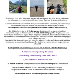 Begleiter*innen für unsere Schüler*innen im Projekt »Herausforderung« gesucht