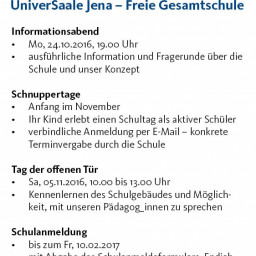 Zwei Informationsveranstaltungen am 24.10.2016 zum Thema: Die optimale weiterführende Schule für mein Kind