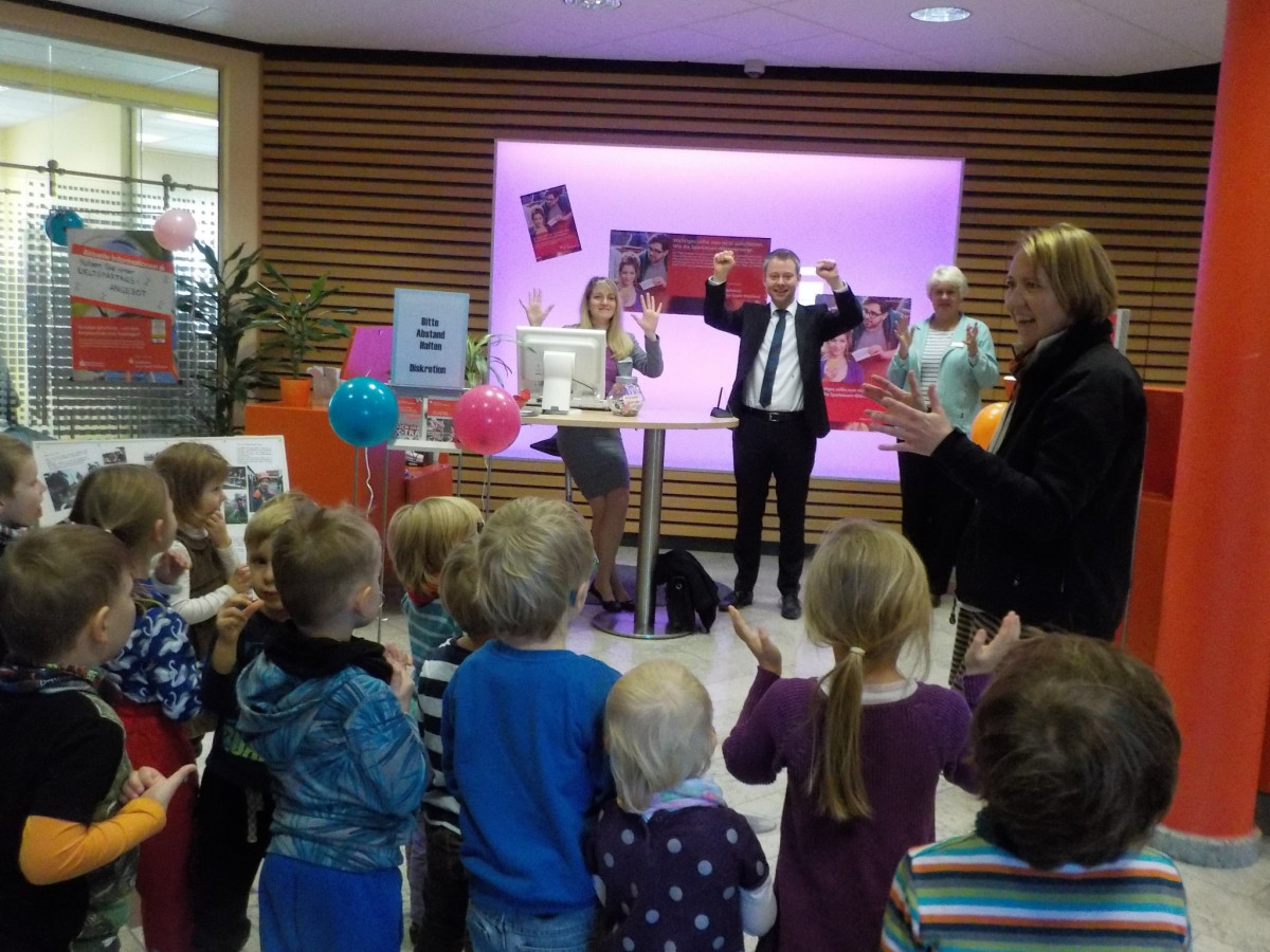 Still no calendar for 2016? Now it’s time! This year is almost over and this is how you can keep track of your dates for next year: You can get yourself a calendar in the Sparkasse Jena-Winzerla. The proceeds are for our kindergarten. We want to develop a room so our children can use all their senses and relax. Today we visited the branch in Winzerla to say thank you for letting us be a part of the campaign this year. We are curious how much money we can raise.