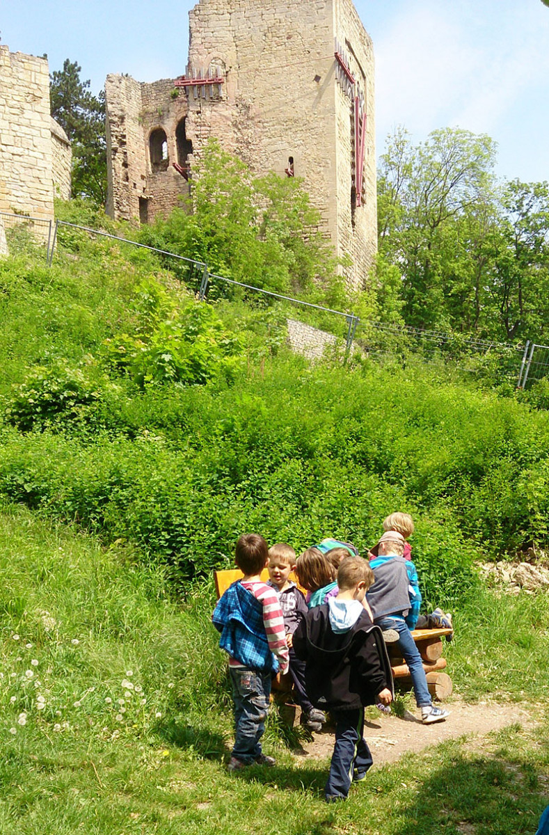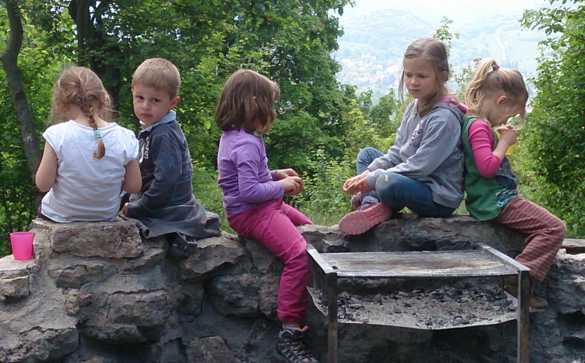 Vom 19. bis 22. Mai fand die Stammgruppenfahrt der Teichhühner und Flugenten der Kita Schwabenhaus statt. Eigentlich sollte die Reise wie jedes Jahr nach Kunitz gehen. Da der Pfarrhof in diesem Jahr jedoch nicht zur Verfügung stand, kam die Idee auf, die vier Tage in der STEINMALEINS Grundschule in Lobeda zu verbringen. Dort war man sofort bereit, die Kinder aufzunehmen – denn zu diesem Zeitpunkt waren auch die Grundschüler_innen auf Stammgruppenfahrt und die Schule stand leer. Diese Alternative stellte sich für die 29 Kinder und sechs Pädagog_innen als absoluter Volltreffer dar. Der tolle Schulhof wurden von allen Kindern sofort entdeckt, bestaunt, bewundert und in Besitz genommen. Geschlafen wurde in gemütlichen Bettenlagern im Snoozle-Raum, Therapieraum und in der Bibliothek, und die Möglichkeit selbst zu kochen war ebenfalls ein großer Pluspunkt. Tagsüber ging es zum Wandern und Entdecken in die Umgebung. Die Gruppe erkundete die Lobdeburg, das Gestüt in Altlobeda, den Spielplatz am Bolzplatz ebenso wie die Schlucht am Fuße der Lobdeburg. Abends wurde Lagerfeuer gemacht, gekocht, gelesen, gesnoozelt und gekuschelt. Verwöhnt wurden alle zusätzlich von den Eltern, die Kuchen vorbeibrachten und Elke, der viel gelobten „Frühstücksfee“. Alle haben sich so wohl gefühlt in Lobeda und schwärmen noch immer, dass die Reise nächstes Jahr wieder zur STEINMALEINS gehen soll.