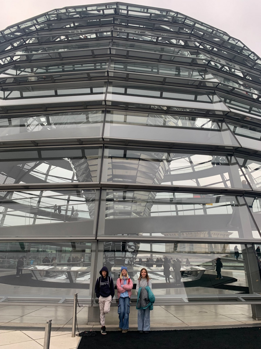 Nach dem Abenteuer Bahnfahrt hatten Leon, Wilma und Anna (aktuelle beziehungsweise ehemalige Schülersprecher*innen der Grundschule) die Gelegenheit, mit anderen Nominierten aus verschiedenen Bundesländern am Vormittag bei einer Führung durch den Bundestag und an einem Gespräch mit Kathrin Göring-Eckardt (MdB/Grüne) teilzunehmen. Dieser Programmpunkt beeindruckte unsere SteinMalEins-Delegation schon sehr. Richtig aufregend wurde es dann als am Nachmittag, als die Preisverleihung im Stiftungsforum am Brandenburger Tor begann: eine große Bühne, viele Menschen, prominente Gäste, spannende andere Demokratie-Projekte aus verschiedenen Kitas und Schulen und die kribbelige Frage, ob einer der Preise an die SteinMalEins gehen würde.