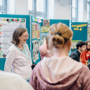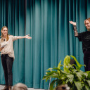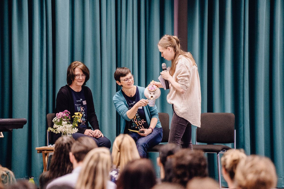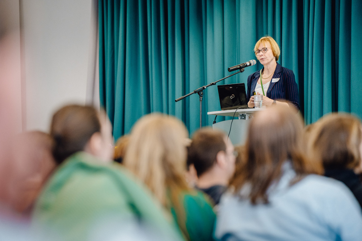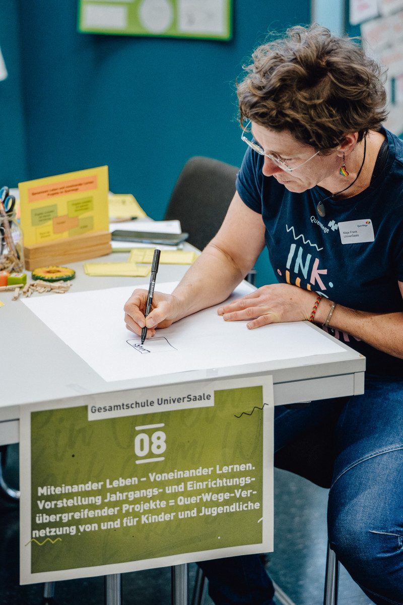 Die anderen Programmpunkte des Tages rahmten die Messe hervorragend: In einer entspannten »Teerunde« unterhielten sich Anke Protze (Vorstandsvorsitzende QuerWege e.V.) und Anke Mamat (Organisationsteam des QuerWege-Tags) zu Beginn des Tages auf der Bühne über Erfolg und Fehlertoleranz an konkreten Beispielen. Das Improtheater Rabakomplott mit Moderatorin Elli setzte mit witzigen kleinen improvisierten Stücken und spontanen Szenen sehr gute Schlaglichter auf unseren Arbeitsalltag und sorgte in zwei Sessions am Morgen sowie am Nachmittag für Lockerheit mit aha-Effekten. Und der Fachvortrag von Frau Prof. Bärbel Kracke (Professorin für Pädagogische Psychologie an der FSU Jena und Lehrstuhlinhaberin) am Nachmittag, zeigte uns sehr nachvollziehbar und nahbar auf, warum Kooperationen elementar für unsere Arbeit sind: Weil diese, wenn sie auf Vertrauen und Kommunikation basieren, zu mehr Zufriedenheit und Effektivität führen. Und Sie fördern die Prozesse, die es für ein inklusives Vorgehen zum Wohle der Kinder und Jugendlichen braucht. Kooperation ist uns so wichtig, dass wir sie seit vielen Jahren in unserem Leitbild festgeschrieben haben: »Wir garantieren Qualität durch professionelles Arbeiten des Einzelnen in interdisziplinärer Kooperation.«