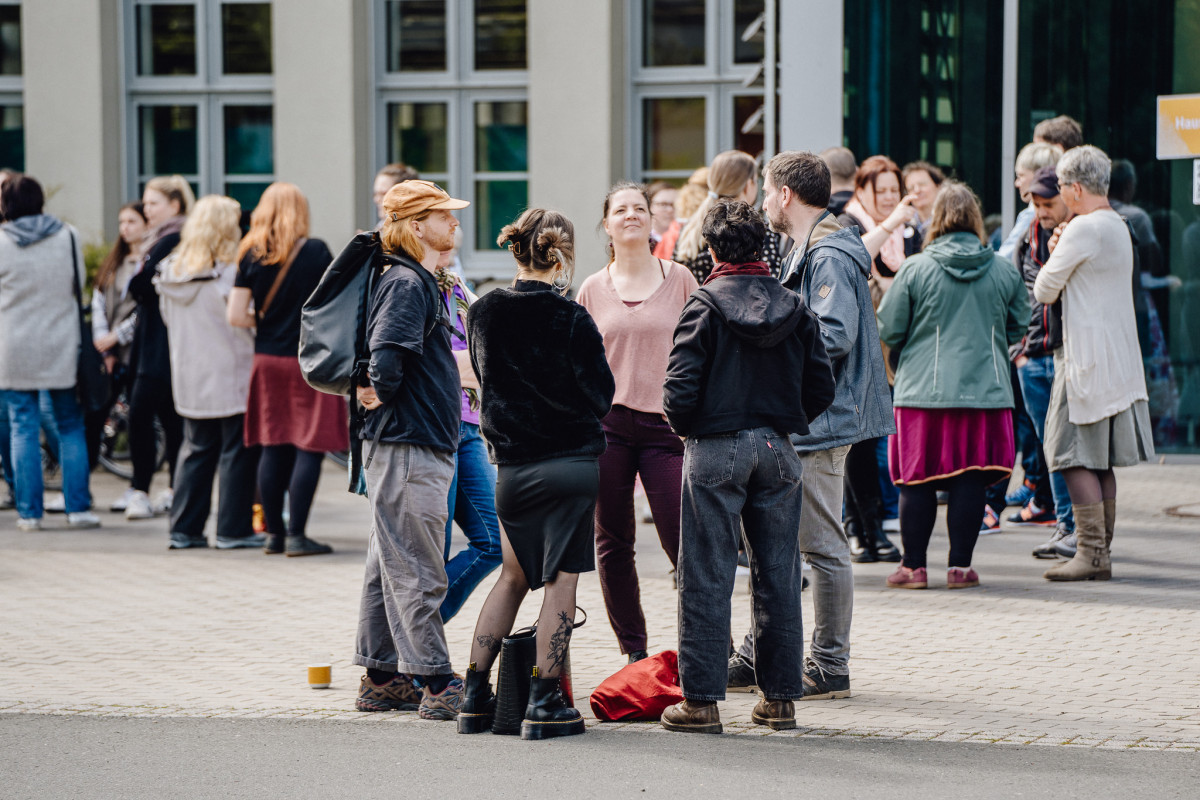 Danke an alle Kolleg*innen fürs Gestalten der Stände, für offene Ohren, fürs Teilen von Erfahrungen, für helfende Hände und praktische Unterstützung. Danke an das Orgateam für das Zusammhalten aller Fäden, an die Schüler\innen der UniverSaale, die uns mit ihrem Kuchenbüffet versorgt haben, danke Elli, Josie und Mykyta vom Rababakomplott für die Heiterkeit mit Tiefgang und danke an Frau Prof. Kracke für ihren wertvollen Exkurs.