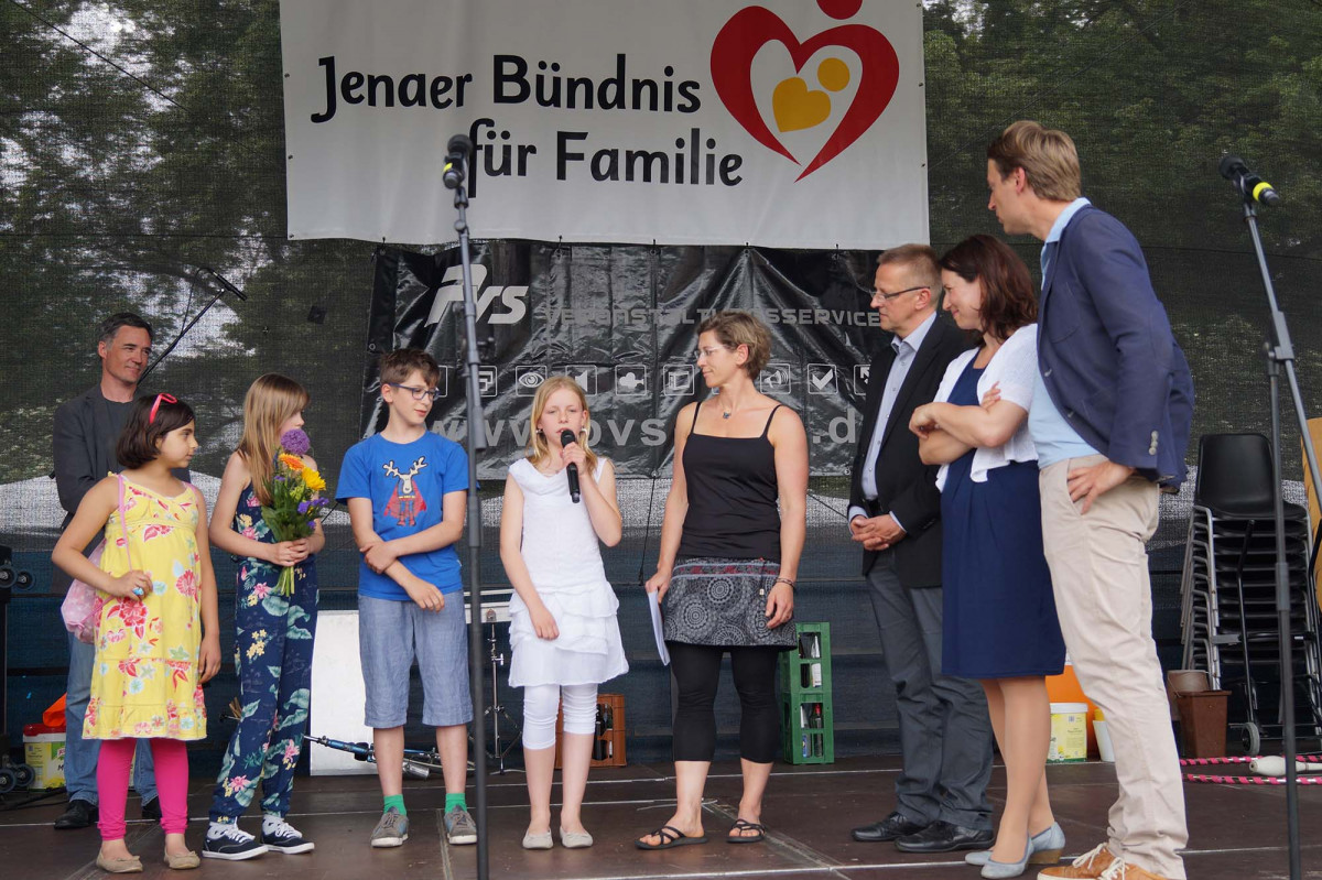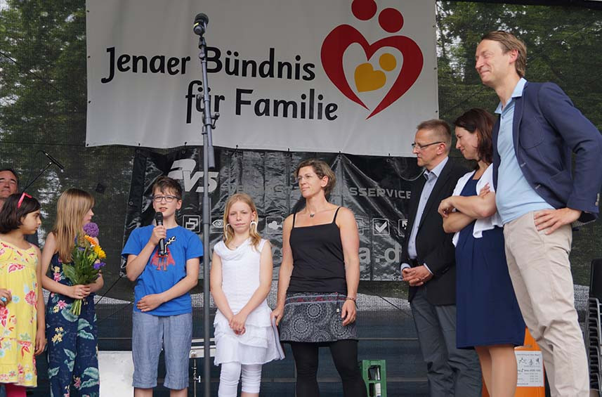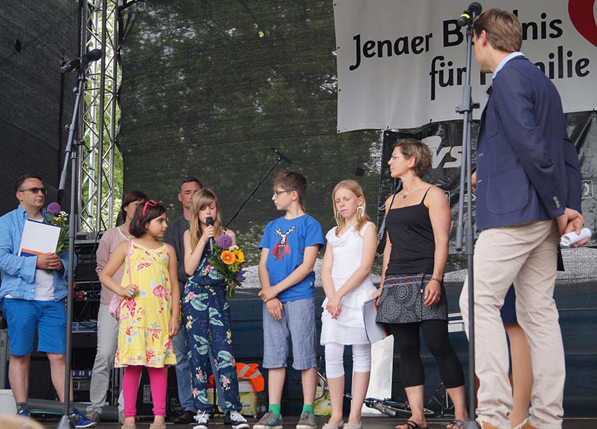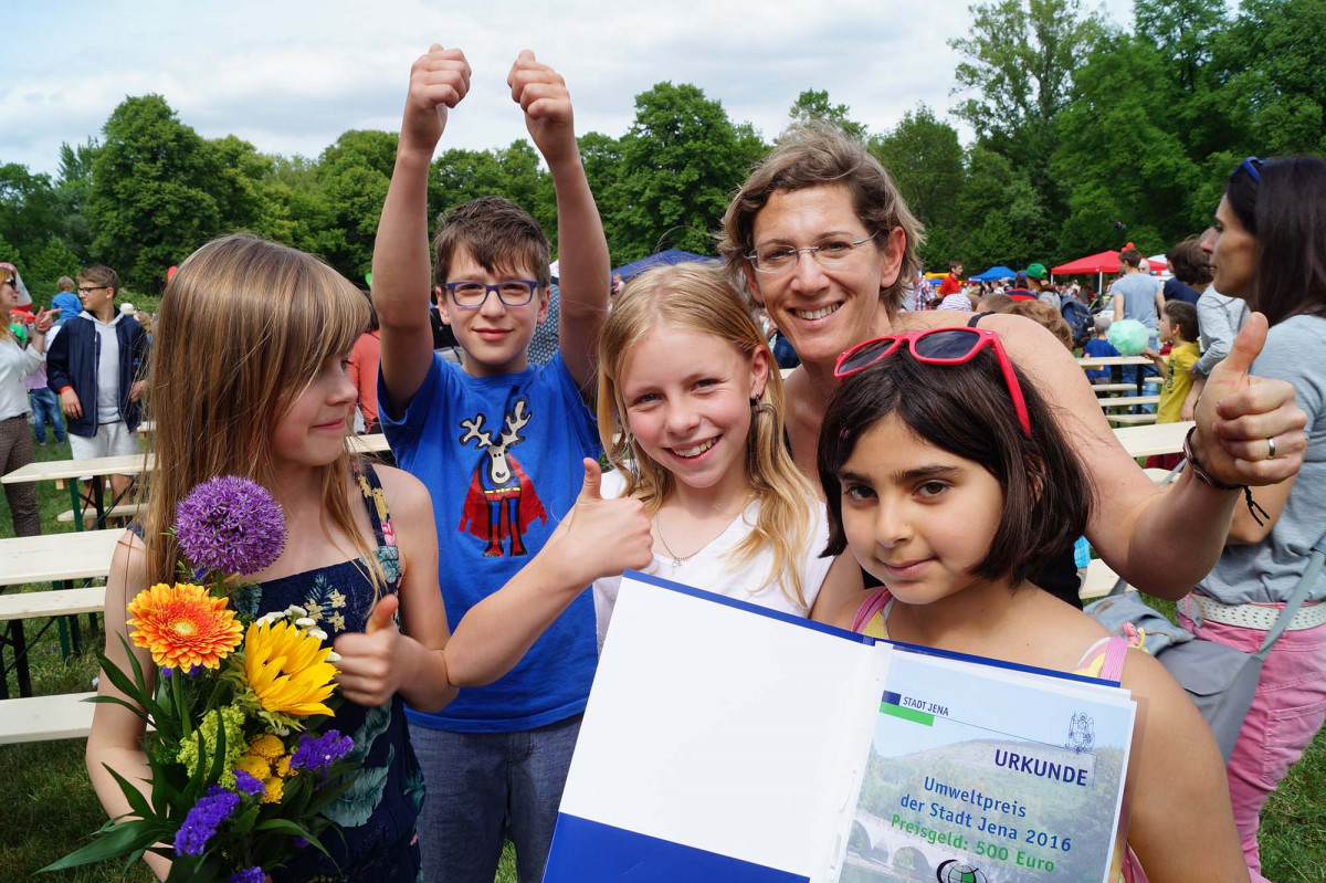 Die Umweltaktionsgruppe „Stoppt den Müll mit Gebrüll“ der UniverSaale, begleitet von Pädagogin Maja Frank, wurde mit dem Umweltpreis ausgezeichnet. Wir gratulieren! Beim Kinder- und Familienfest mit Umwelttag und Radtag im Paradies am 21.05.2016 wurde der Jenaer Umweltpreis 2016 verliehen. Die Schüler_innen nahmen ihre Auszeichnung von der Grünen-Fraktionsvorsitzenden im Landtag, Anja Siegesmund, Stadtentwicklungsdezernent Denis Peisker und Stadtwerke-Geschäftsführer Thomas Zaremba stolz entgegen.