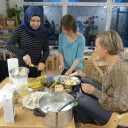 Am 3. Mai 2017 fand unser erster gemeinsamer Kochabend in der Kita Pi mal Daumen statt. Eingeladen wurden alle Eltern der Kita. Unter der fachmännischen Leitung unserer indonesischen Meisterköchin Tini hieß es ab 18.00 Uhr für interessierte Eltern Gemüse und Fleisch schnippeln, würzen, braten, kochen und anrichten. Nebenbei wurde in gemütlicher Runde viel geschnattert und gelacht. Nach gut 3 Stunden (und großem Hunger) war es endlich soweit und wir konnten unser indonesisches Dreigang-Menü kosten. Fazit: Es war richtig lecker und wir gingen satt und glücklich nach Hause. Und so freuen wir uns auf einen nächsten gemeinsamen Kochabend in der Kita Pi-x-Daumen.