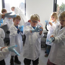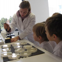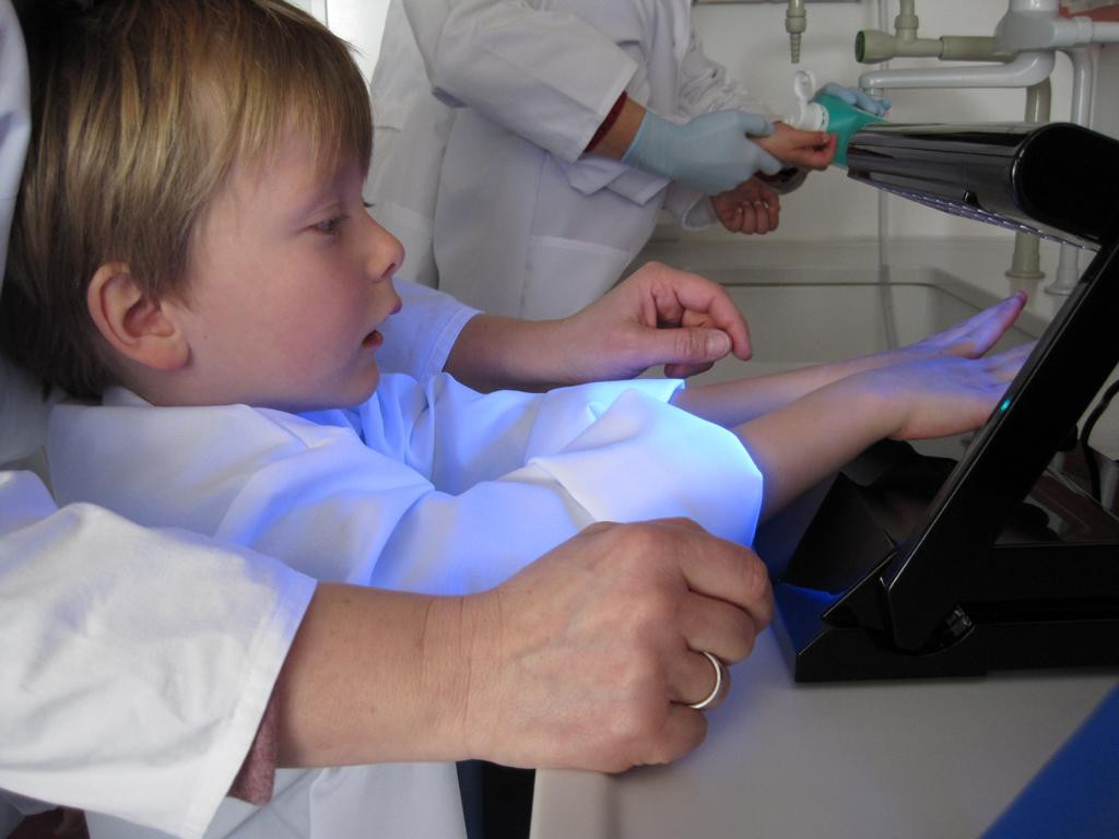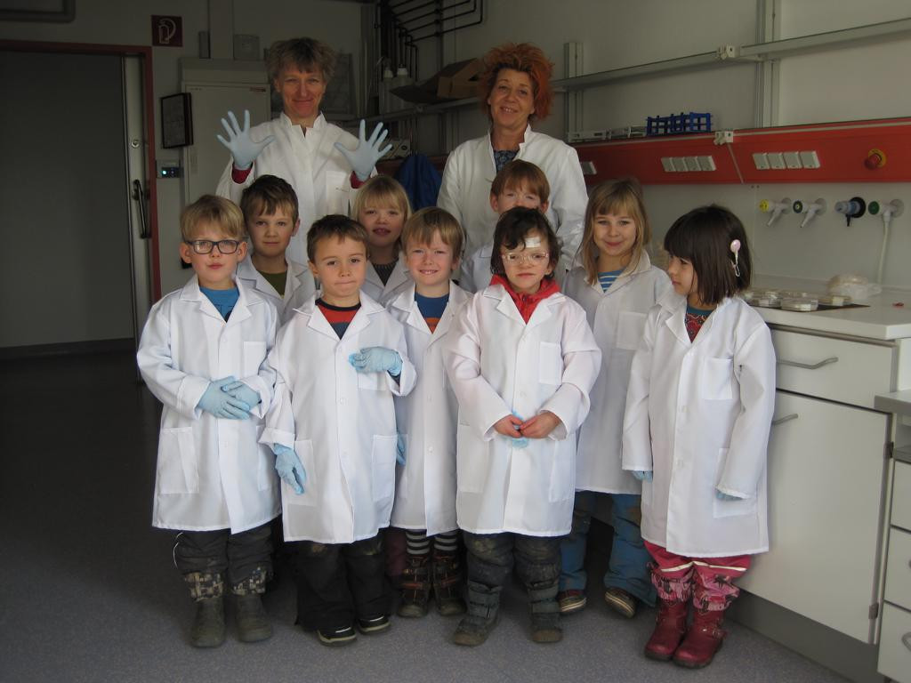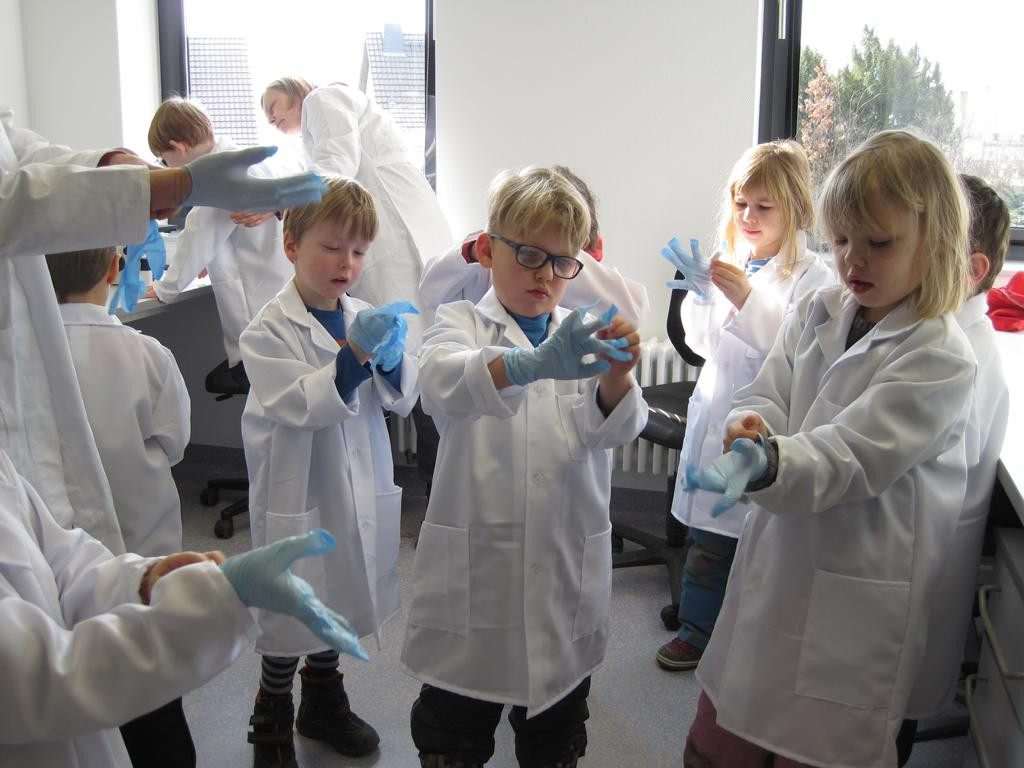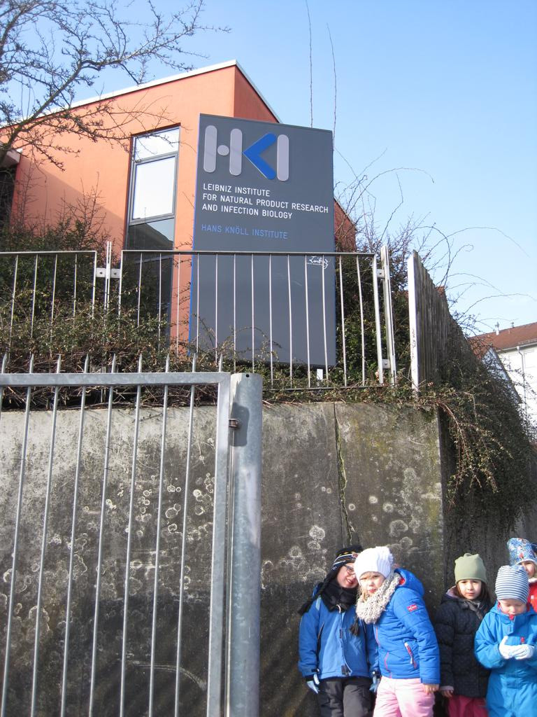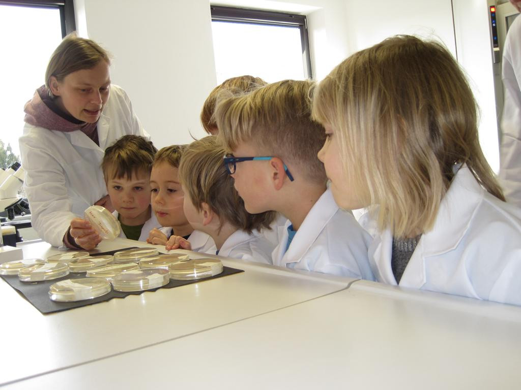Das konnten die Wackelzahnkinder der Jupitergruppe im LEIBNIZ INSTITUT FOR NATURAPRODUCT RESEARCH AND INFECTION BIOLOGY am 23. Februar 2018 erfahren. Am Anfang der Woche wurden Spiele, Finger und Pflanzen in Agarplatten gedrückt, beschriftet und verschlossen. Dann ging es ab damit ins Labor. Am Freitag konnten wir die Ergebnisse unter dem Mikroskop begutachten. Wir sahen genau, wo sich Pilze (meist pelzig) und wo sich Bakterien (eher wie kleine Kolonien) entwickelt hatten. Bei manchen kam auch kein Ergebnis heraus, aber das gehört zu einem Forscherleben dazu. Frau Gerbach erklärte uns alles und zum Schluss haben wir uns mit einer Seife die Hände gewaschen und unter einer Wunderlampe genau sehen können, welche Stellen nicht gewaschen waren. Oh, sollten wir uns ab jetzt – ganz unabhängig von allen Grippewellen – gründlicher die Hände waschen?