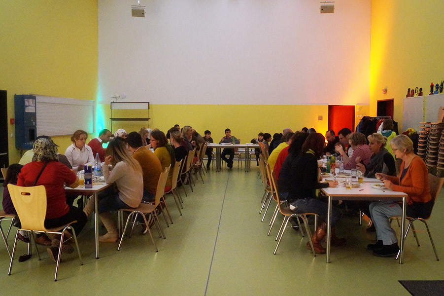 Am Freitag, dem 22.01.2016 duftete es wieder aus der Schülerküche der SteinMalEins und UniverSaale im Paradies. Zu unserem dritten Kochabend „Bunte Töpfe“ fanden sich etwa 50 interessierte fleißige Gäste verschiedener Herkunft ein – die Hälfte von ihnen Geflüchtete und die andere Hälfte Jenaer_innen.