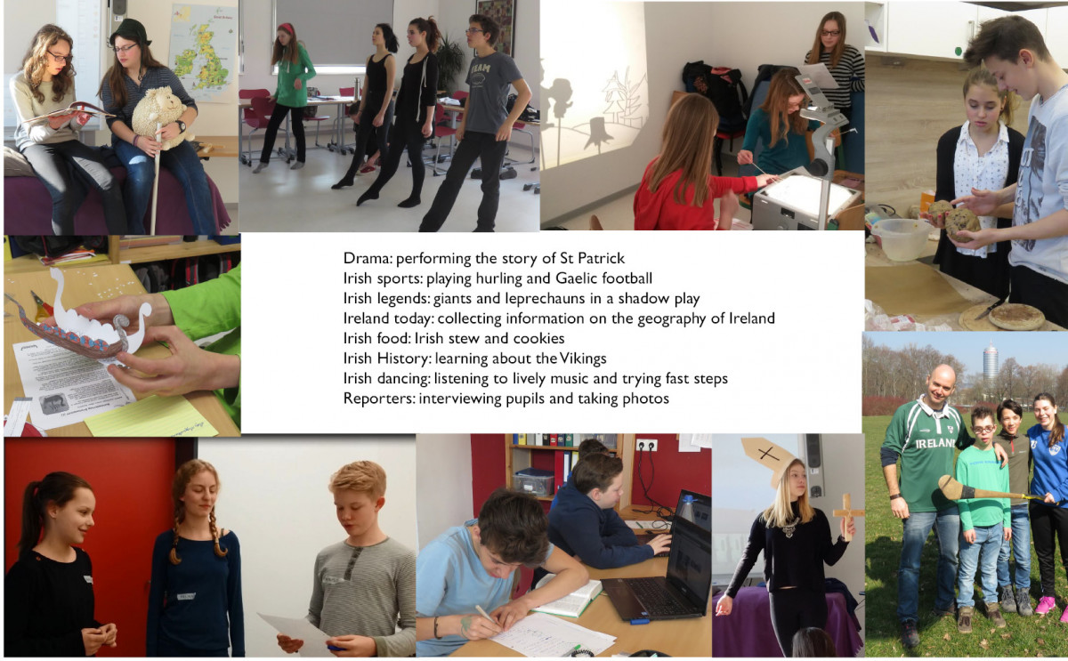 In der Woche vom 14.-17. März 2016 waren Studierende der Universität Erfurt zu Gast an der UniverSaale. Im Rahmen ihres Masterstudienganges für das Lehramt Englisch an Regel- und Förderschulen führten sie mit den Schülern und Schülerinnen der 7. und 8. Jahrgangsstufe eine Projektzeit zum Thema „Irland“ durch. Vorangegangen waren Unterrichtsbesuche und einführende Gespräche mit den Lehrkräften der UniverSaale. Ziel des Projekts war es, den Kindern vielfältige Möglichkeiten zur Beschäftigung mit dem Thema anzubieten und dabei einen Zuwachs an interkulturellen und sprachlichen Kompetenzen zu erreichen. Für die Studierenden bot sich die Möglichkeit, Einblicke in die Arbeit mit einem inklusiven Schulkonzept zu gewinnen. Sie sagen ganz herzlichen Dank an das Team der UniverSaale für die gute Zusammenarbeit!