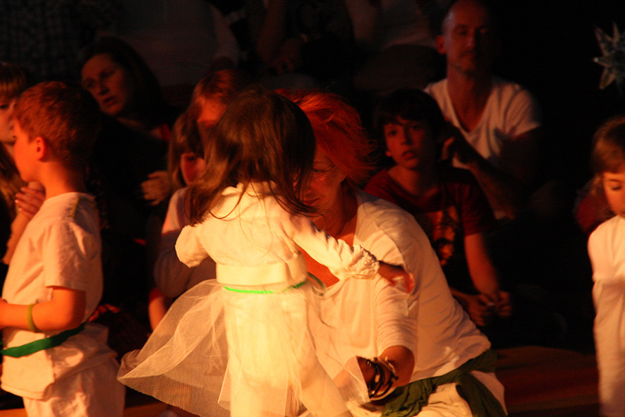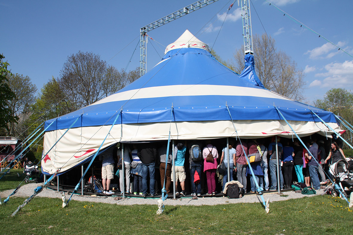Manege frei für Inklusion! Am 24. April fand das gemeinsame Zirkusprojekt der drei QuerWege-Kitas mit dem Kinder- und Jugendzirkus MoMoLo seinen fulminanten Abschluss. Mehr als 300 Besucher waren bei der Zirkusshow anwesend um den über 100 kleinen Akrobaten, Zauberern, Tänzern, Clowns, Sängern und Trapez-Artisten zuzuschauen. Während der Projektwoche vom 20. bis 24.4. wurde mit 40 Kindern, überwiegend künftige Schulanfänger, intensiv mit den Zirkuspädagogen von MoMoLo geprobt – im Zirkuszelt und in den Räumen der UniverSaale. Parallel dazu bereiteten die Jüngeren in ihren Kitas eigene Kunsttücke vor. Zur großen Zirkusshow am Freitag kamen dann alle Beiträge zusammen. Bereits seit Fasching wurde in den Kitas inhaltlich zum Thema Zirkus gearbeitet. Die Kinder besuchten sich gegenseitig in ihren Einrichtungen um erste Übungen auszuprobieren. Die Zirkusprojektwoche und die intensiven Vorbereitungen waren nicht nur für die Kinder ein einmaliges Erlebnis, bei dem alle ihre Talente erproben und Grenzen überwinden konnten. Auch für die Mitarbeiter_innen der Kitas war das gemeinsame Projekt eine schöne Gelegenheit, näher zusammen zu wachsen. Deshalb berät man schon über weitere gemeinsame Projekte…