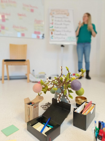 Im November durften wir bei einen wunderbaren Workshop mit Rebecca Giersch unser Wissen um Moderationsmethoden und effektive Meetings auffrischen. Gemeinsam definierten wir Gelingensfaktoren und Killer für Meetings, lernten die Methode des Integretiven Entscheidens, erfuhren, warum in Spannungen Veränderungspotential steckt und hatten viel Spaß beim Rollenspiel. Führungskompetenzen wurden gestärkt durch spannungsbasiertes Arbeiten, klare Moderationsrollen und geschicktes Störungsmanagement. Es war ein Tag voller Insights und praxisnaher Tipps für effektive Meetings!