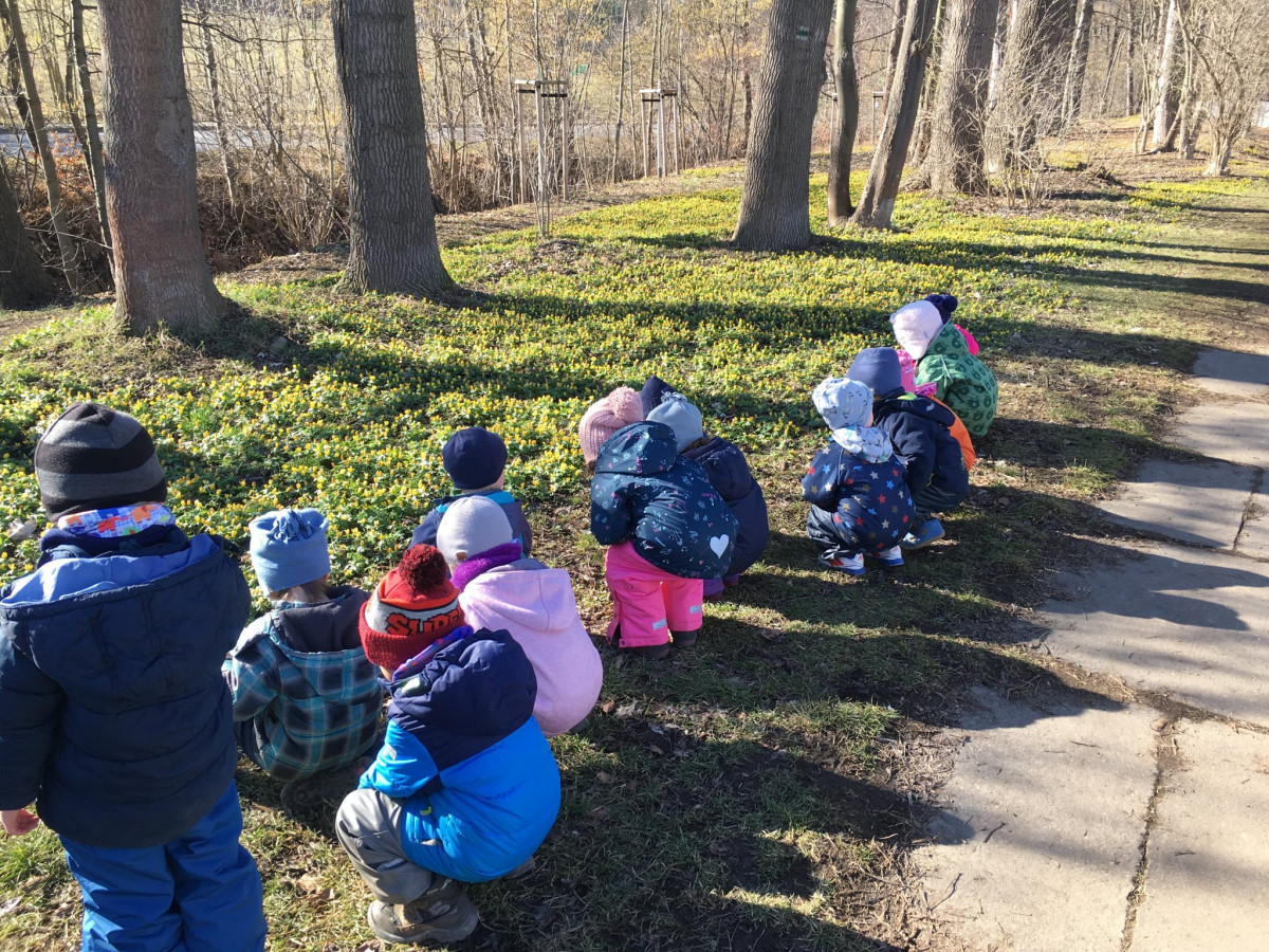 und die Frühblüher haben wir auch gefunden. Bei schönstem Frühlingswetter haben wir einen Ausflug in die Natur unternommen. Viele leuchtende und süß duftende Entdeckungen haben wir dabei gemacht. Der Krokus hat seine Nase schon ans Licht gestreckt und auch Schneeglöckchen, Märzenbecher und die Winterlinge konnten wir vielfach bewundern.