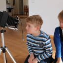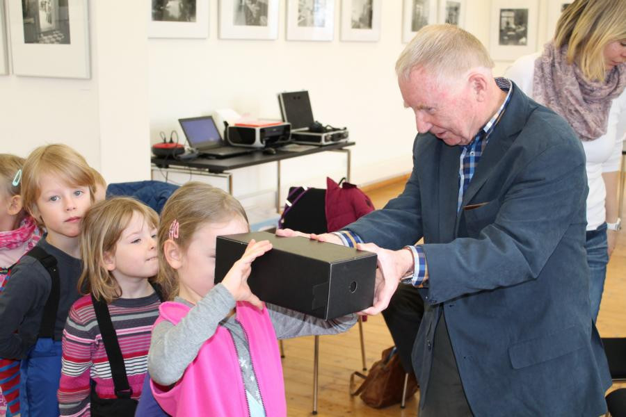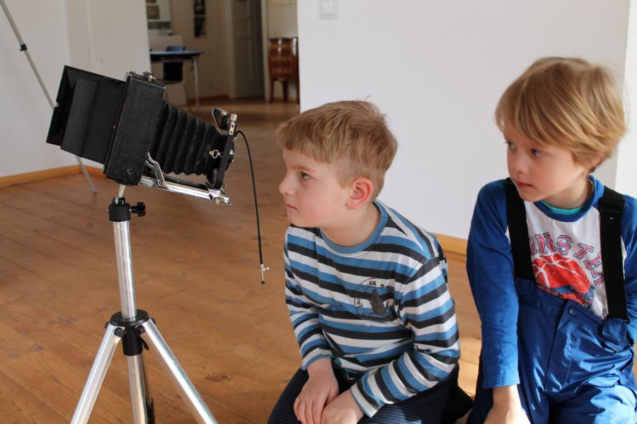 Unser Projekt “Zeitreise – gemeinsam.multimedial.kreativ” ist ein Modellprojekt des Thüringer Medienbildungszentrums der TLM in Zusammenarbeit mit der Evangelischen Erwachsenenbildung, mit JenaKultur der Stadt Jena und unserer Kita. Am Montag, dem 29.Februar 2016, startete unser Projekt in der Villa Rosenthal zum Thema Fotografie früher und heute. Nach dem gegenseitigen Kennenlernen zeigten uns die Erwachsenen Bilder aus ihrer Kindheit. Schnell erkannten die Kinder Unterschiede zu heutigen Aufnahmen. Auch in der Handhabung wiesen neue und alte Geräte kaum Gemeinsamkeiten auf. Durch den Einsatz neuer Technik konnten gerade eben fotografierte Bilder sofort ausgedruckt werden. Mit viel Ausdauer und Freude erstellten die Kinder in Zusammenarbeit mit den Senioren interessante Collagen.