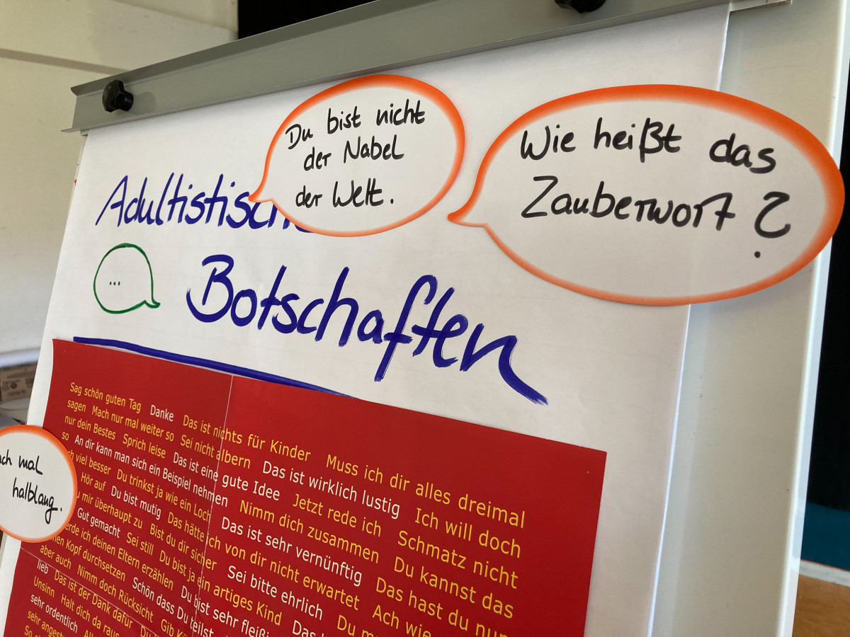 Dabei wurde der Fokus im ersten Workshop zunächst auf die Auseinandersetzung und Reflektion von Machtstrukturen, Adultismus, den eigenen Umgang mit Macht und gewaltvollem Handeln teils biografisch und im eigenen Arbeitskontext gerichtet.