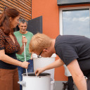 Gemeinsames Feiern hat bei QuerWege Tradition und das diesjährige Vereinsfest knüpfte an diese hervorragend an. Die ca. 150 Gäste, die sich am Freitagabend in unserem Schulgebäude im Paradies eingefunden hatten, konnten sich sportlich, musikalisch und spielerisch bei den Workshops ausleben, beim Impro-Theater des Rhababakomplott aktiv werden und bei der Ska-Reggae-Band BJELOMORKANAL das Tanzbein schwingen. Das leckere Mitbring-Buffet, deftiger Kesselgulasch (inkl. veganer Variante) und Thüringer Roster füllten die Mägen, während der Hopfenduft vom Bierbrau-Workshop über den Schulhof wehte. Der Abend, organisiert vom Bereich individuelle Hilfen, war eine tolle, bunte Gelegenheit bei der einrichtungsübergreifend gefeiert und geplaudert werden konnte. Gleichzeitig konnte man die Gedanken in die Vergangenheit reisen lassen und die (gerade entstehende) QuerWege-Chronik bis in Jahr 1993 verfolgen. Mit Lagerfeuermusik klang im Feuerschein der Abend aus, bis die letzten Gäste weit nach Mitternacht fröhlich, inspiriert und schließlich müde nach Hause gingen.