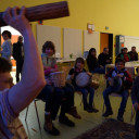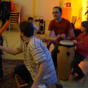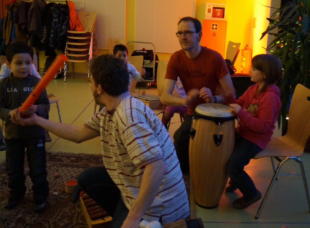 In der Aula ließen die Musikpädagogen/Musiktherapeuten Stefan Täuber und Steffen Landeck aus dem Projektteam von Steffen Landeck mit allen Interessierten die Luft erbeben. Im Bemühen um einen gemeinsamen Rhythmus entwickelte sich ein harmonisch schwingendes Vertrauensverhältnis zwischen den Gästen und begann zu klingen. Insgesamt erlebten wir wieder ein herzlich buntes musikalisches, kulinarisches, kulturelles Miteinander im Paradies für mehr Zwischenmenschlichkeit statt Isolation. Wir nehmen uns Zeit Werte vorzuleben und über Freiheit, Menschenwürde, Werte und Tugenden, eine friedliche Vielfalt von Lebensentwürfen zu sprechen.