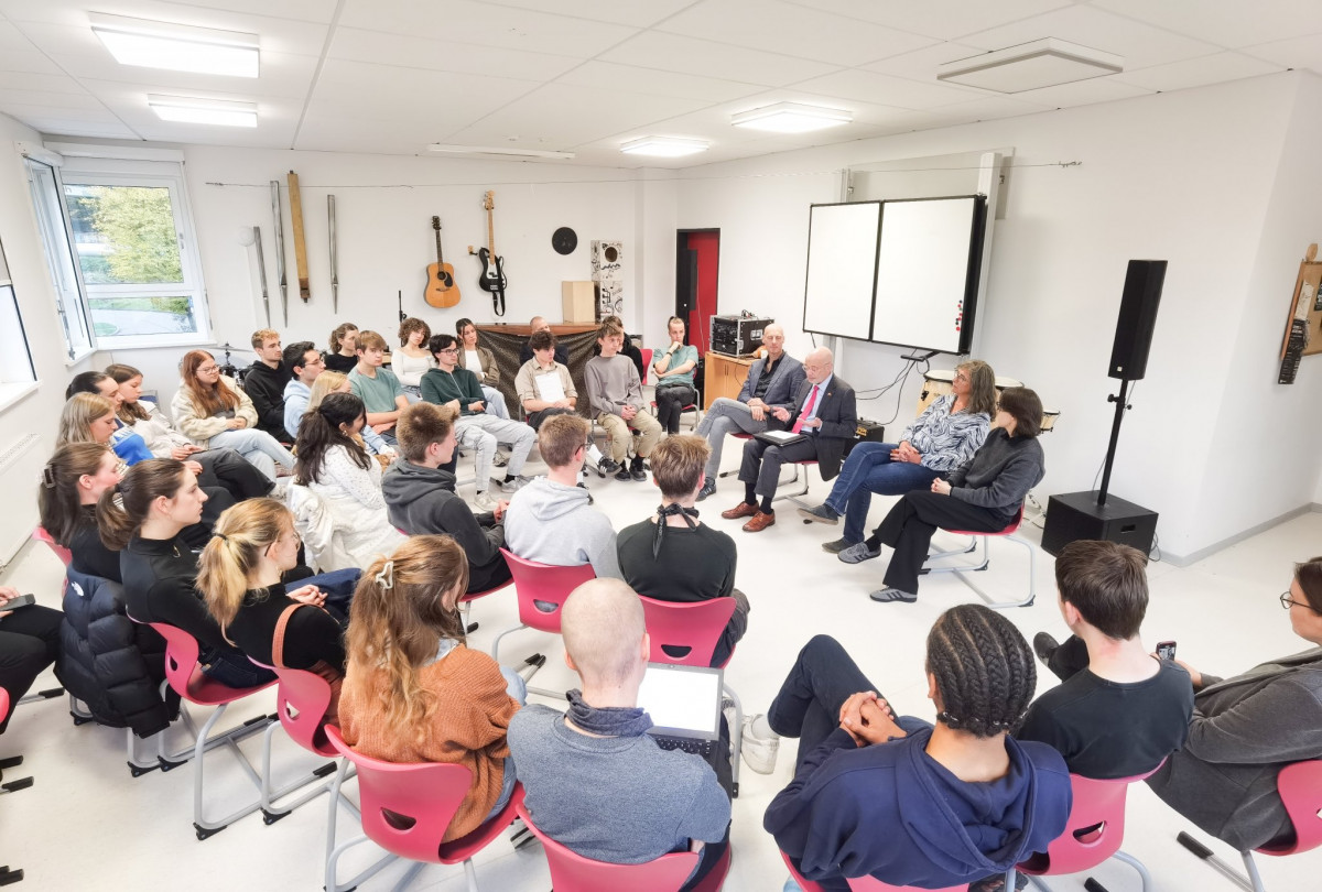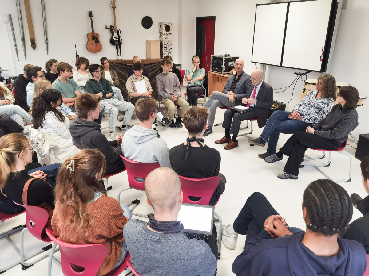Für die Schüler*innen und ihre Lehrkräfte war die Stunde – fernab von oberflächlichem Populismus oder den im öffentlichen Diskurs gängigen Floskeln – ein äußerst offener und ehrlicher Austausch über unsere Demokratien dank eines beeindruckenden und nahbaren Gastes!