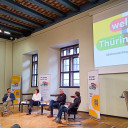 Denn bei der gestrigen Veranstaltung – mit Pressegespräch, Podiumsdiskussion und Workshops – waren sich alle Anwesenden einig: die Demokratie steht unter Druck und Thüringen droht mit der nächsten Landtagswahl zentrale gesellschaftliche Werte wie auch wirtschaftliche Erfolgsfaktoren zu verlieren. Rund 150 Unterstützer*innen waren in Präsenz ins Jenaer Rathaus gekommen, um sich nicht nur zu den Werten Weltoffenheit, Diversität, Toleranz, Freiheit zu bekennen, sondern konkret darüber zu sprechen, wie Gesicht gezeigt, Aufklärung geleistet und Menschen in ihrer demokratischen Verantwortung gestärkt werden können.