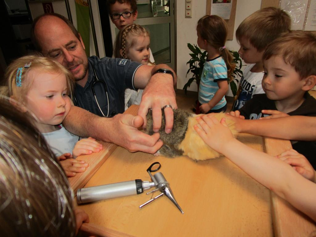 1 mal jährlich werden unsere vier Meerschweinchen von einem Tierarzt untersucht. Dabei werden sie abgehört, die Krallen müssen bei Bedarf geschnitten werden und ein Blick in den Mund darf nicht fehlen. Interessiert beobachteten unsere Kinder die Untersuchung und durften natürlich mit helfen. Fazit: alle unsere Vierbeiner sind gesund und bestens von uns versorgt.