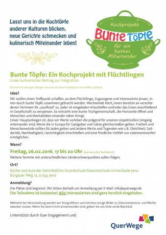 QuerWege e.V. Kochprojekt: „ Bunte Töpfe“ Deutsche Kreditbank IBAN: DE 96120300001005364508 BIC BYLADEM 1001