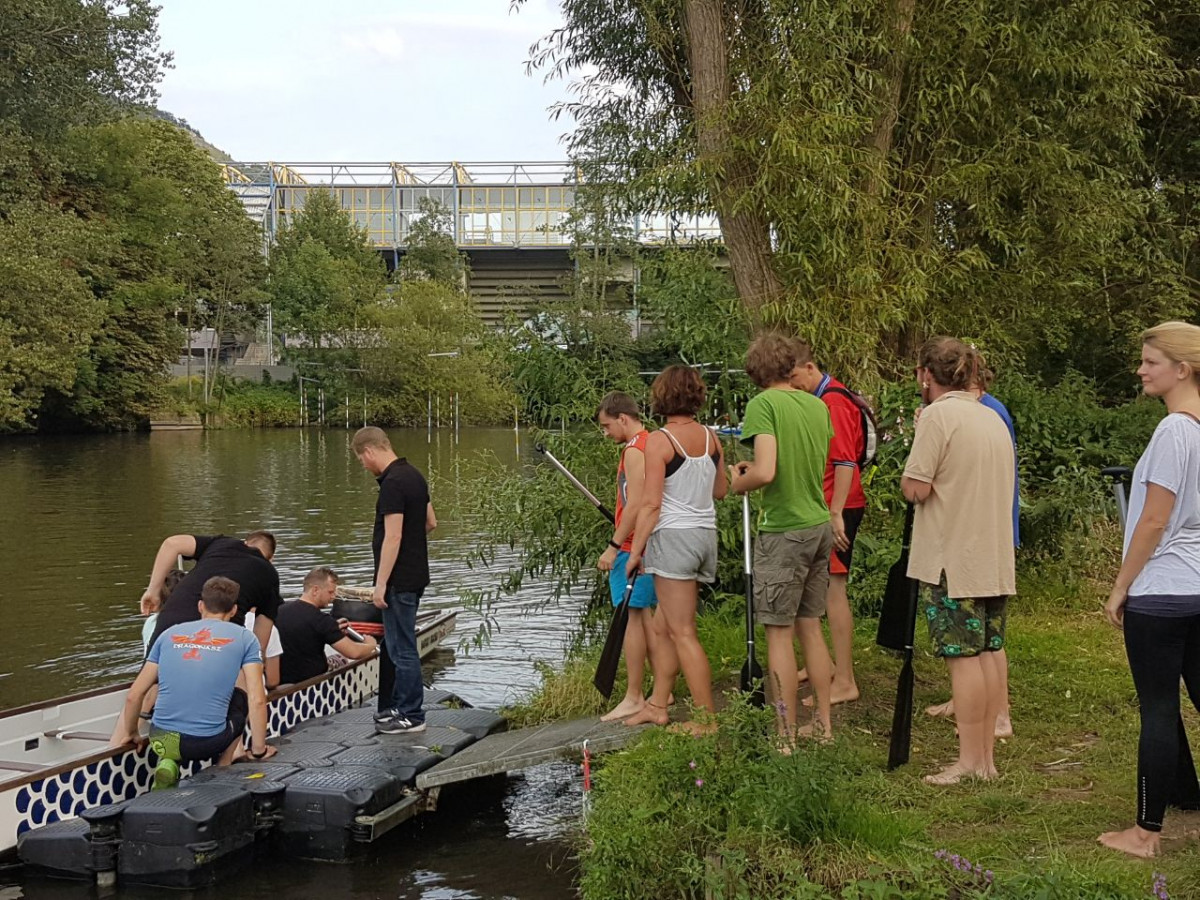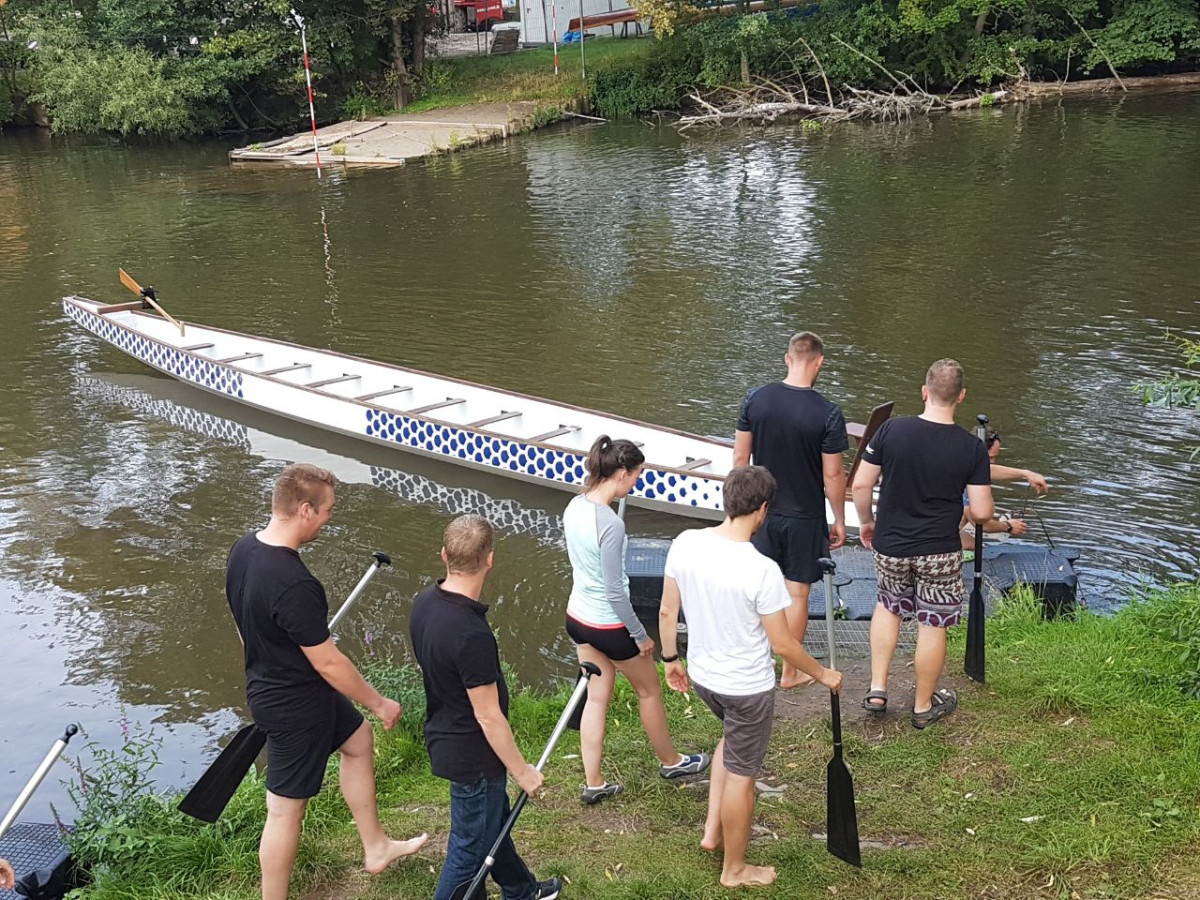 In diesem Jahr startet erstmalig das Team Q-Boot neben den Querschlägern vom QuerWege e.V. zum Drachenboot-Sprint auf dem Schleichersee. Die Individuellen Hilfen haben eine eigene Mannschaft aufgestellt, bestehend aus hochmotivierten, sportlich begeisterten Schulbegleiter_innen und Freunden der Individuelle Hilfen. Jeden Mittwoch trainieren sie mit ihrem sehr geduldigen :-))Trainer Heiko. Das Boot wiegt 250 kg ohne Besatzung. Hier ist Teamfähigkeit von Anfang an wichtig, denn ohne eine Zusammenspiel kommt das Boot nicht trocken ins Wasser. Der Trommler Lasse, sitzt in erster Reihe un gibt den Takt an. In diesem Rythmus heißt es VORLAGE, FERTIG, AB und STOPP in Vorfreude auf den Drachenboot Sprint am 09.09.2017 auf dem Schleichersee.