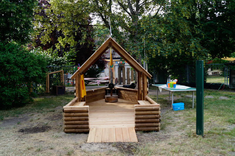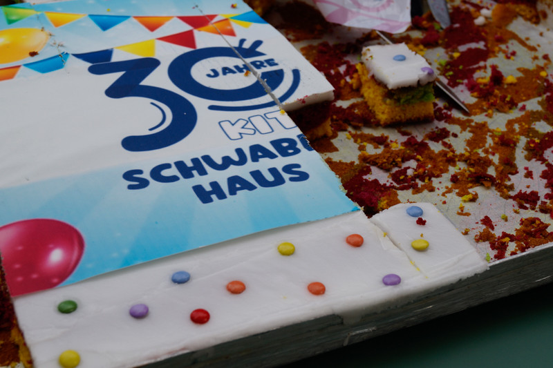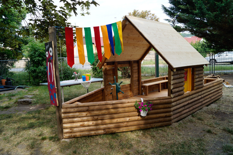 Der Montag unserer Festwoche startete bunt, lecker und mit einem lauten “Ahoi”. Wir konnten offiziell unser neues Piratenschiff einweihen, dass mit großartiger Unterstützung zweier Schwabenhaus-Papas in vielen Arbeitstunden erbaut wurde. Ein wunderschönes Geschenk für unsere Kinder, die das neue Spielgerät gleich begeistert stürmten. Dazu gab es leckeren Jubiläumskuchen, Seifenblasen, Kinderdisko und und und.