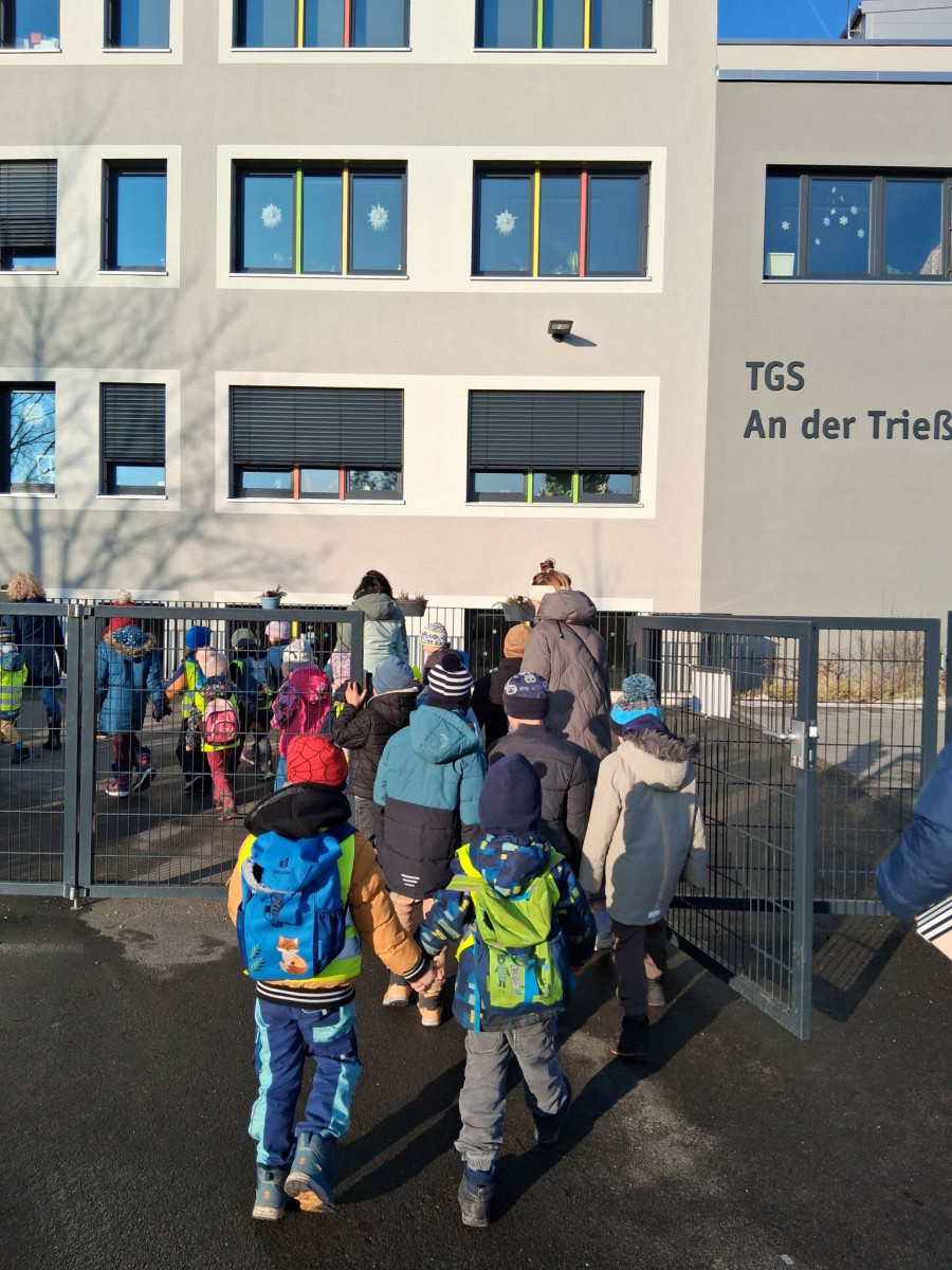 Kurz vor den Winterferien startete unsere Kooperationsschule »An der Trießnitz« im Programm »ElternChanceN« nochmal richtig durch. In ihrer Projektwoche zum Thema »Demokratie« fanden jede Menge Ausflüge und Aktionen statt. Am Dienstag, dem 10.2. waren wir dabei und konnten miterleben, wie schon Grundschulkinder Verantwortung für Jüngere übernehmen: Kinder der QuerWege-Kita »Schwabenhaus« durften die Schule kennenlernen. Die Schüler*innen schrieben sogar vorher einen Einladungsbrief und holten die Kinder persönlich an der Kita ab. Hier bildeten sich kleine Patenschaften: Paarweise führten die Schulkinder die Jüngeren zum Schulgebäude und zeigten ihnen dort viele wichtige Räume. Die Kita-Kinder stellten viele Fragen, zum Beispiel: Hat man in der Schule einen festen Sitzplatz? Was wird im Werkraum gemacht? In der Turnhalle spielten die Kinder gemeinsame Bewegungsspiele. Alle waren begeistert und die Kita-Kinder wären gerne noch länger geblieben. Sie freuen sich nun umso mehr auf ihre zukünftige Schulzeit.