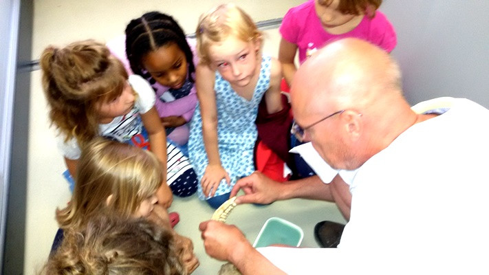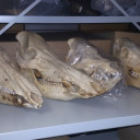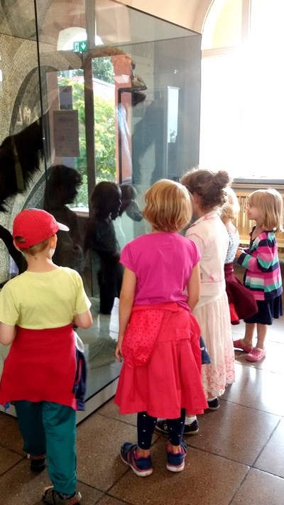 Am 18.07.2017 waren wir zu Besuch im Phyletischen Museum um unsere Fundstücke von der Gruppenfahrt im Juni 2017 begutachten zu lassen. Herr Krüger führte uns in das Trockenarchiv vom Phyletischen Museum und zeigt uns viele verschiedene Knochen, Schädel und Gebisse zum Vergleich. Dabei stellten wir fest, dass es sich um zwei Fragmente des Oberschenkelknochens vom Rind, sowie um einen Schädel und Unterkiefer vom weiblichen Damwild handelt. Dieser Besuch war für uns sehr beeindruckend.