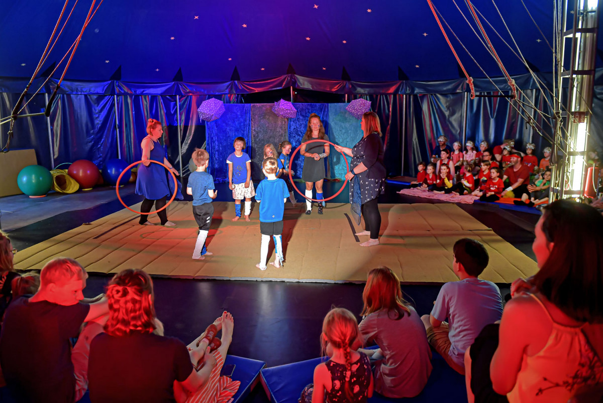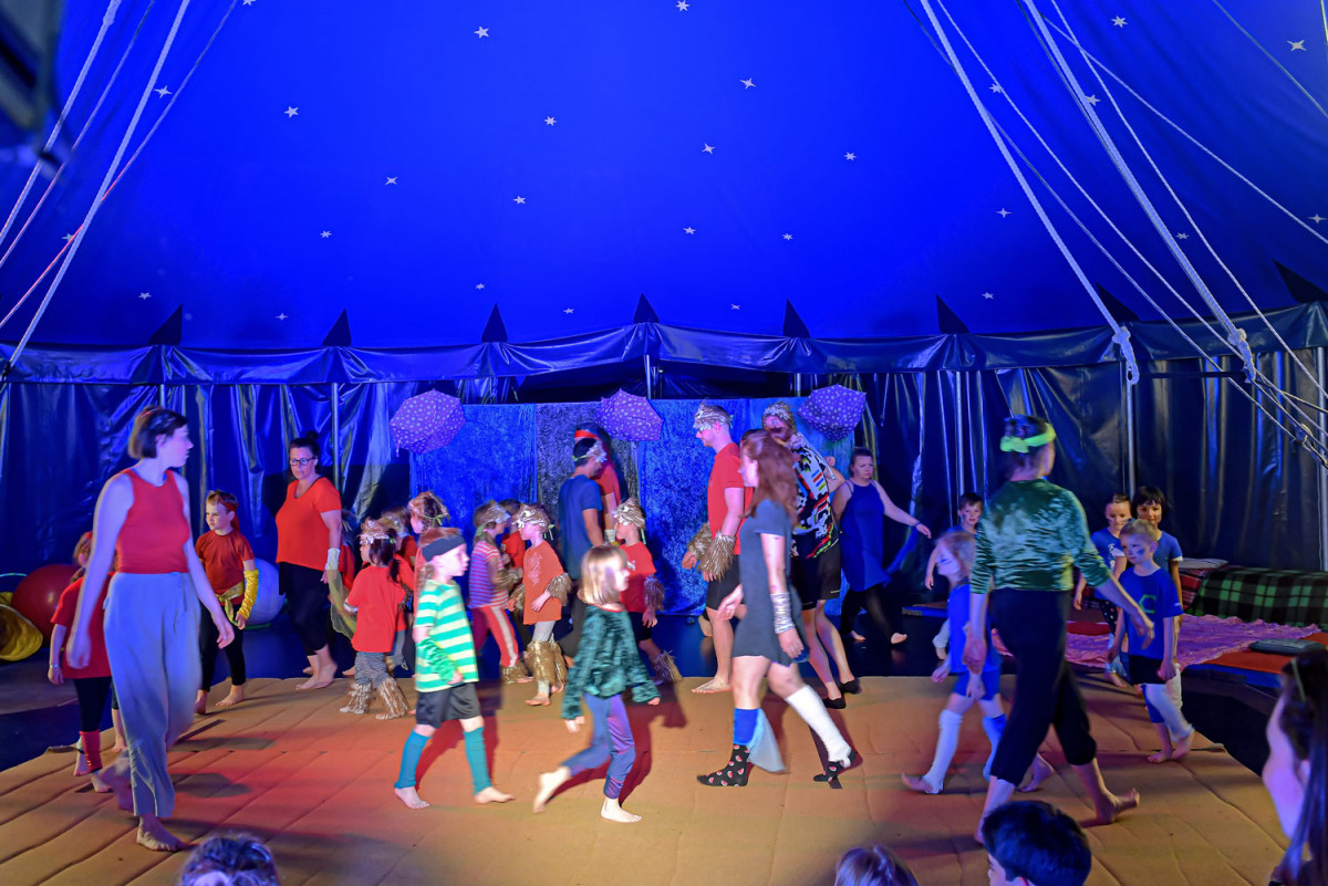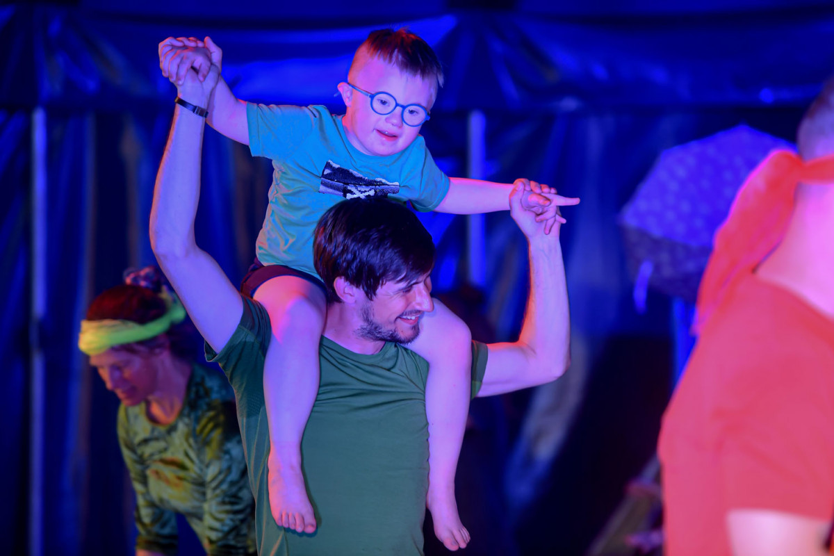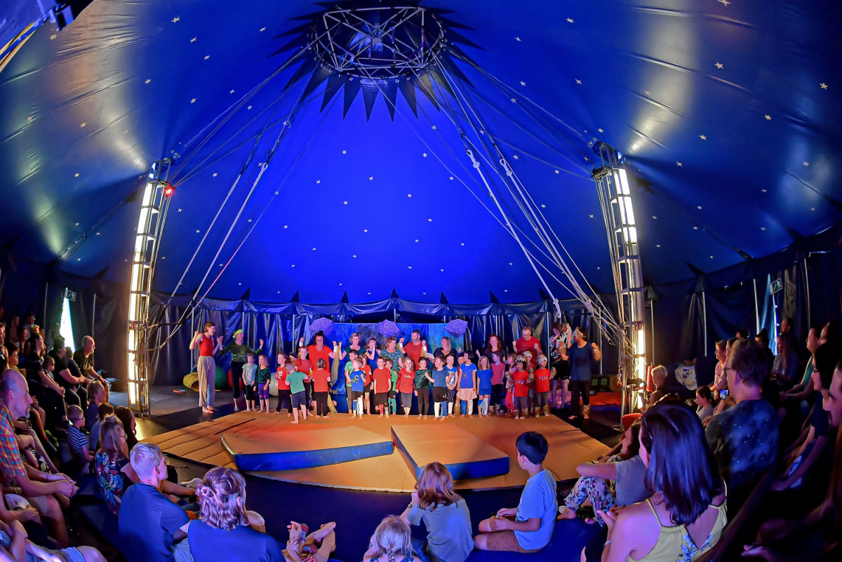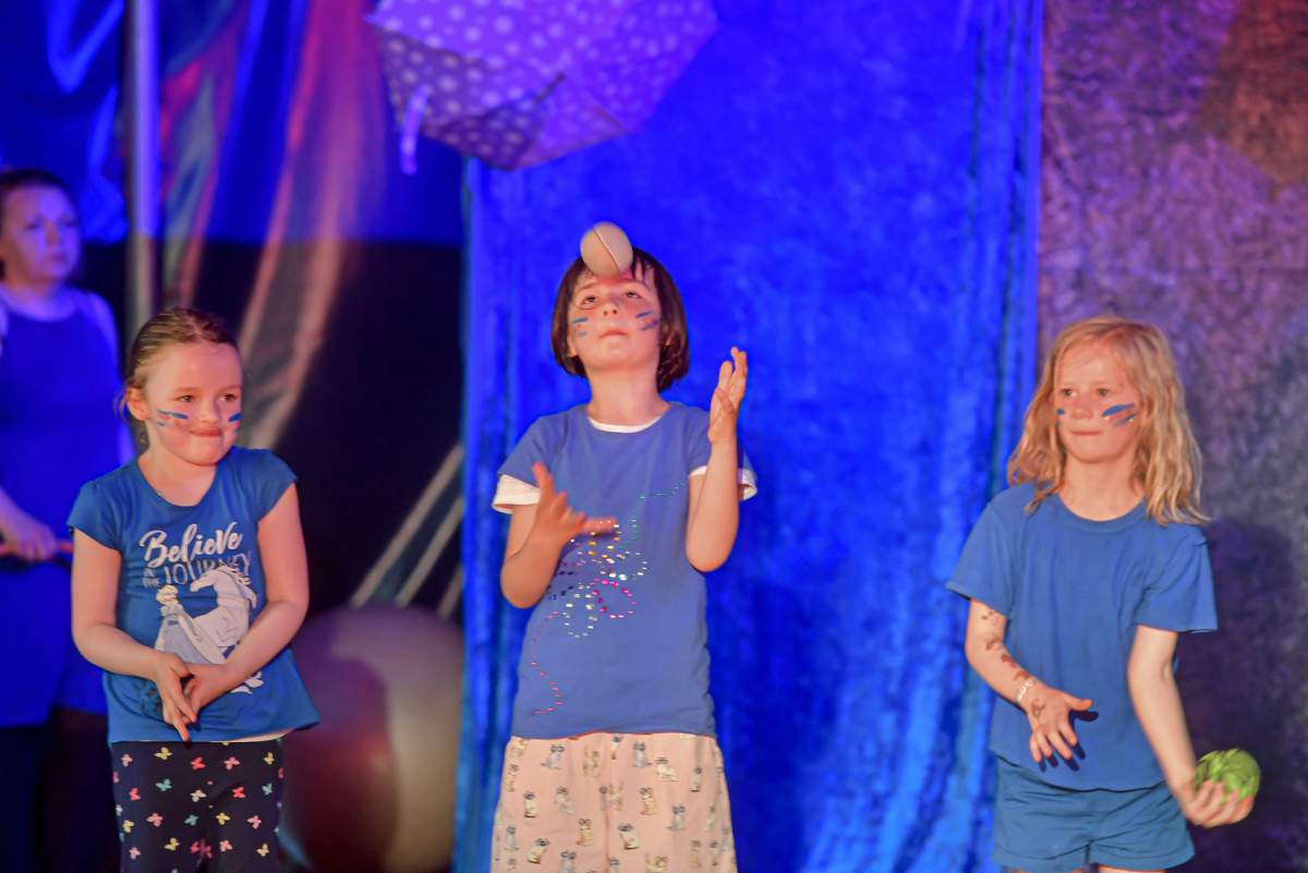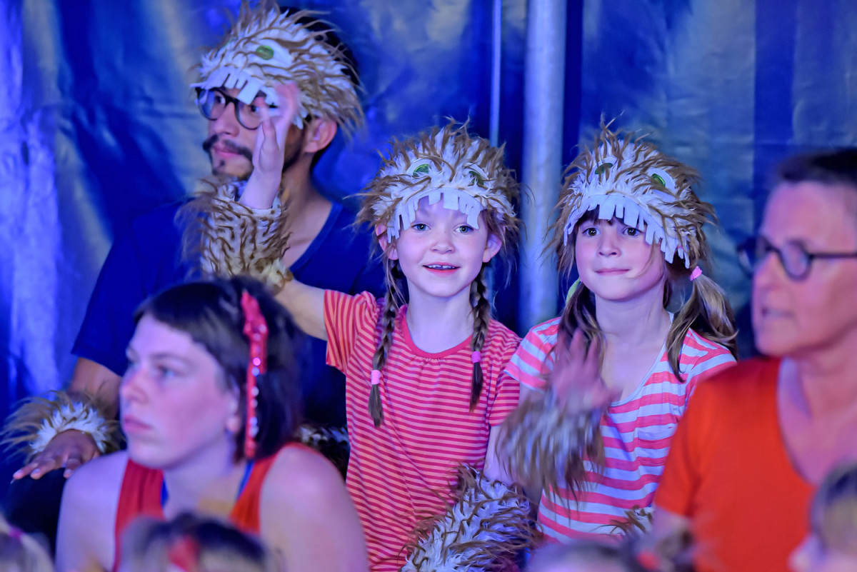 Die 26 Kinder der drei Kitas trafen sich jeden Tag halb 9 um gemeinsam zu frühstücken. Nach einer Aufwärmung würde in Gruppen geprobt, angeleitet durch MoMoLo-Zirkuspädagog*innen, wobei jeden Tag große Fortschritte gemacht wurden. Am Freitag war der Höhepunkt der Woche. Nach der Generalprobe am Vormittag, zu der alle anderen Kinder der drei Kitas eingeladen waren, stand um 15 Uhr die große Premiere an – eine großartige Vorstellung, die Eltern und Geschwister in Staunen versetzte. Mit Lichteffekten, Kostümen, Musik und in der tollen Kulisse des MoMoLo-Zirkuszeltes zeigen die stolzen Kinder, was sie alles gelernt hatten.