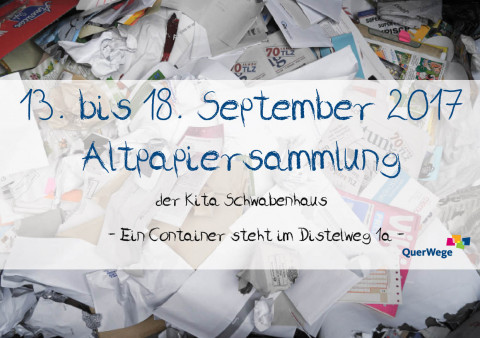 Vom 13.- 18. September steht erneut ein riesiger Container vor unserer Tür und der darf gern randvoll gefüllt werden mit allem, was aus Papier ist, für neue Dinge: