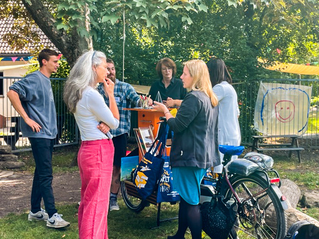 Am Mittwoch, den 25.08.2021, durften wir Max Hauschild von QuerWege (SteinMalEins) und Julia Hauck (Agentin für Diversität der Ernst-Abbe-Bücherei) in unserem Garten begrüßen. Gemeinsam sammelten sie Stimmen für eine Zukunftsvision unserer Jenaer Bibliothek.