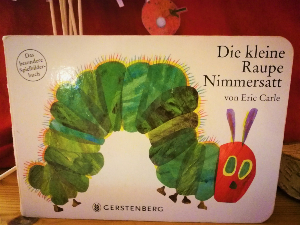 Die Umwelt und dabei auch die Medien, werden von Kindern mit allen Sinnen erkundet. Wesentliche Aufgabe in basalen Bildungsprozessen ist es, sich die Sprache zu erschließen. Es wird gelernt, sich anderen mitzuteilen und andere zu verstehen bzw. die Welt in Bildern abzubilden und zu ordnen. Mit dem „Buch der Woche“ möchten wir den Kindern ein festes Ritual im Tagesablauf bieten, bei dem sie die Möglichkeit bekommen neue Bücher kennenzulernen und durch Wiederholungen (Mo – Fr) gelerntes zu festigen und zu überprüfen. Jeden Tag vor dem Mittagessen lesen wir gemeinsam das Buch und schauen uns die Bilder an, oft sind es auch Bücher bei denen die Kinder mitmachen können, zum Beispiel Körperteile zeigen, Geräusche hören und imitieren, oder bestimmte Materialen fühlen. Uns ist es hierbei wichtig, dass möglichst viele Sinne angesprochen werden und das die Inhalte der Bücher einen engen Bezug zur Lebenswelt der Kinder haben. Am Nachmittag finden sie unser „Buch der Woche“ immer auf dem Regal im Flur, so haben Sie die Möglichkeit gemeinsam mit ihren Kind das Buch noch einmal anzuschauen.