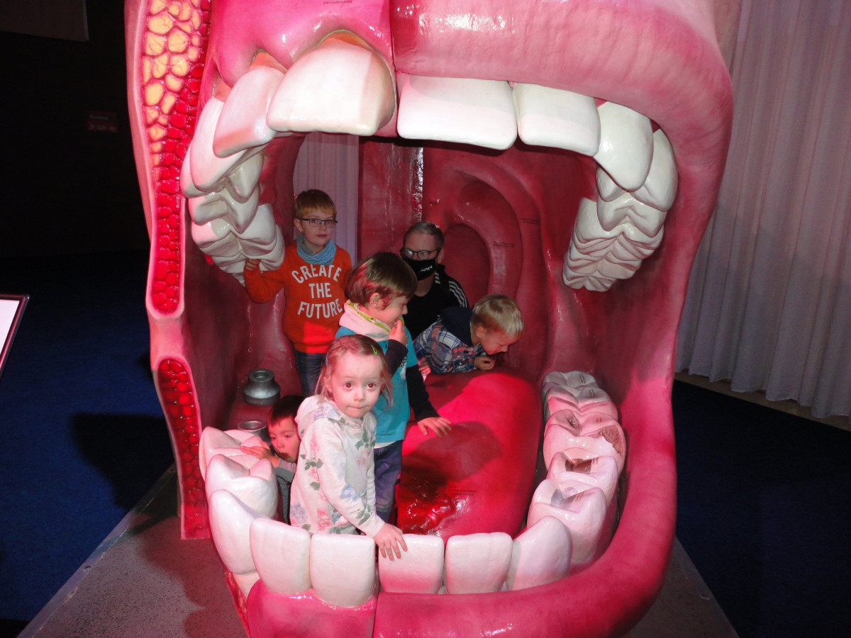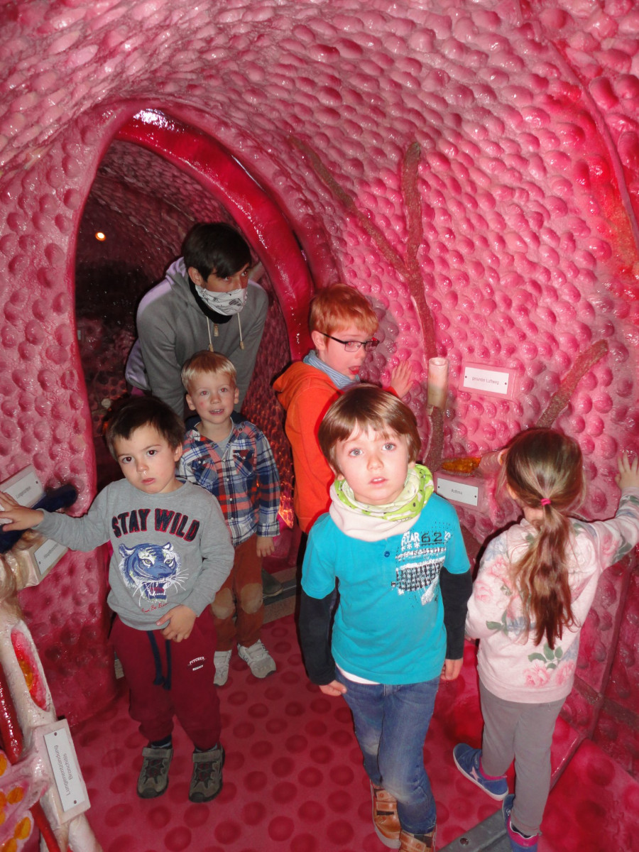 100.000 mal pro Tag stellt sich das Auge scharf. Die Nase kann schätzungsweise 1.000.000.000.000 Gerüche unterscheiden. Das komplette Gefäßsystem mit Adern und Venen ist ca. 100.000 Kilometer lang. Damit könnte man die Erde zweieinhalb mal umrunden. Und mit 300 Quadratmetern ist der Darm das zweitgrößte Organ und beherbergt 100 Billionen Bakterien. Der menschliche Körper ist ein wahres Wunder! Wie dieses Wunder aussieht und funktioniert konnten die Kinder der Feuerfische am 28.10.20 in der Organwelt Jena hautnah erleben. Vom Hirn zum Auge über den Mund, die Lunge, das Hertz, den Magen,… alle Organe des Menschen konnten von innen und außen bestaunt werden. So blieb uns auch der gang durch den Darm nicht erspart. Es war eine spannende Reise in unser Inneres!