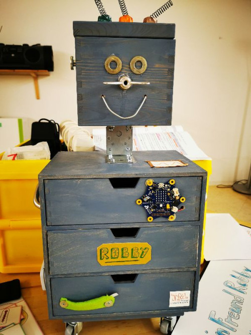 Vom 08.05. bis 12.05.2023 hatten die Vorschulkinder der integrativen Kita Schwabenhaus Besuch von »Robby«. Einem kleinen Holzroboter, mit dem sich die Kinder spielerisch die komplexe Welt der Robotik und der Digitalisierung erobert haben.