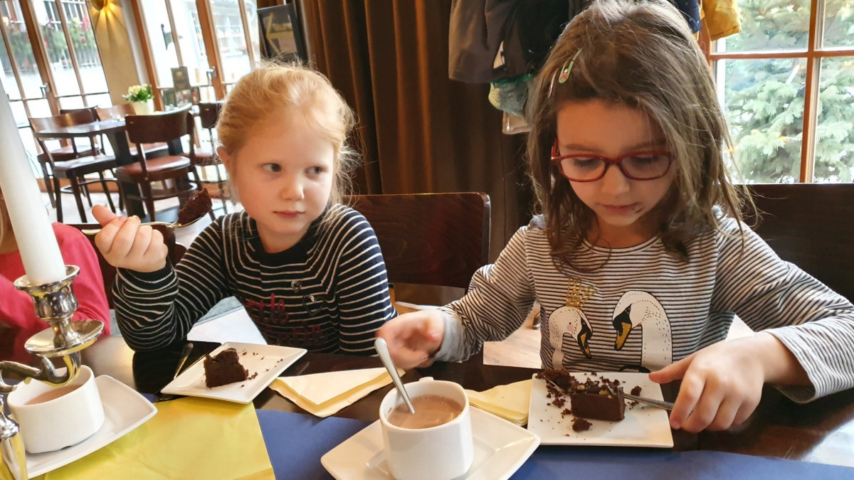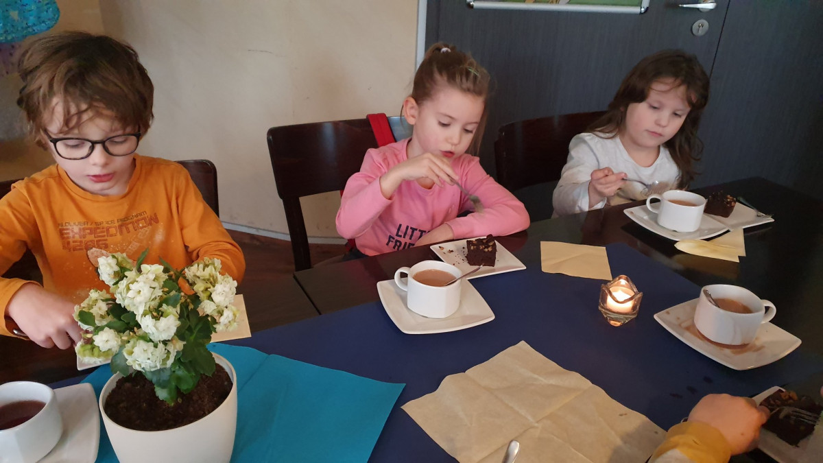 Gegen 13 Uhr wanderten wir mit unseren 13 Wackelzähnen ins Paradies und stärkten uns im Café an einer nur für uns festlich gedeckten Tafel mit warmen Kakao und leckeren Brownies. Auf dem Spielplatz wurde das Piratenschiff erobert und Piraten und Prinzessinnen fuhren jubelnd und grölend über die Meere. Nun endlich verrieten wir den Kindern das Ziel unseres Ausfluges: die Feuerwehr.