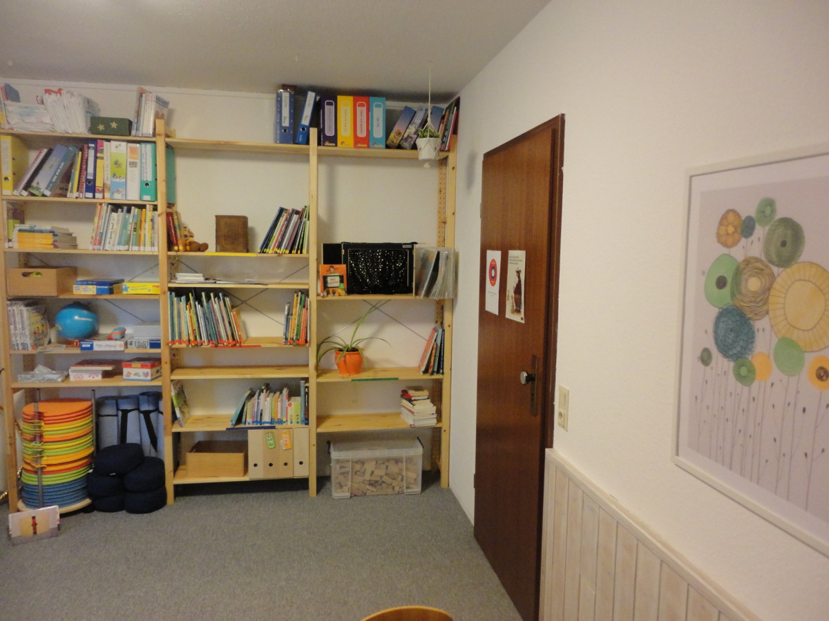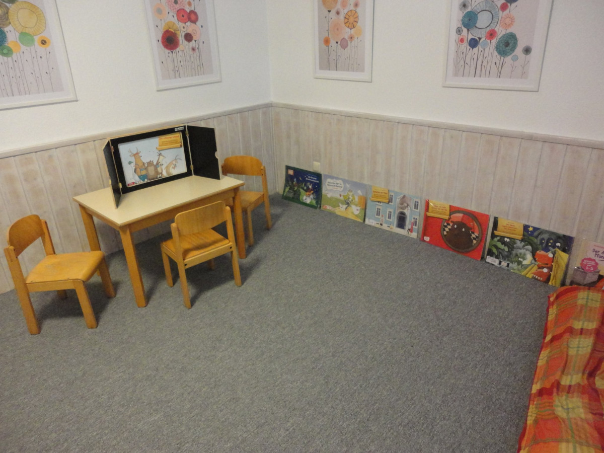 Nun ist es fast ein Jahr her, dass wir unsere Idee mit einer eigenen kleinen Bibliothek im Schwabenhaus verwirklichen konnten. Nachdem wir einen passenden Ort für unser Bällebad gefunden haben, konnten wir die ersten Bücher und das Kamishibai Theater in das neue Bücherregal einräumen. Und wo Bücher stehen, da sollte natürlich auch das Vorlesen und Erzählen von Geschichten und Märchen nicht zu kurz kommen, darf geblättert, fantasiert und entdeckt werden. Um die Bibliothek in unseren Kindergartenalltag zu integrieren, finden verschiedene Angebote am Vormittag oder am Nachmittag ihren Platz. In der Mittagszeit wird der Raum gerne als Rückzugsort für die Kinder der Wachgruppe genutzt, es wird sich noch schnell ein Buch zum Vorlesen vor der Mittagsruhe geholt oder Flötentöne klingen durch die Luft.