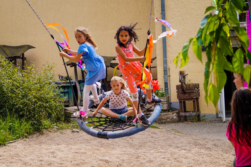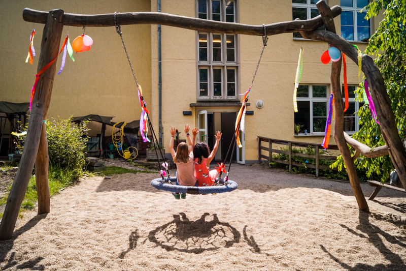 Im Mai wurde unsere tolle, große Nestschaukel, die wir dank des Preisgeldes vom Kinderinklusionspreis kaufen konnten, offiziell eingeweiht. Diesen haben wir 2019 verliehen bekommen und gleichwohl die Schaukel schon länger die Pausen und Nachmittage unserer Schüler*innen bereichert, wollten es sich die Personen, die den Kinderinklusionspreis ins Leben gerufen und das Preisgeld gestiftet haben, nicht nehmen lassen, die Schaukel in Aktion zu sehen.