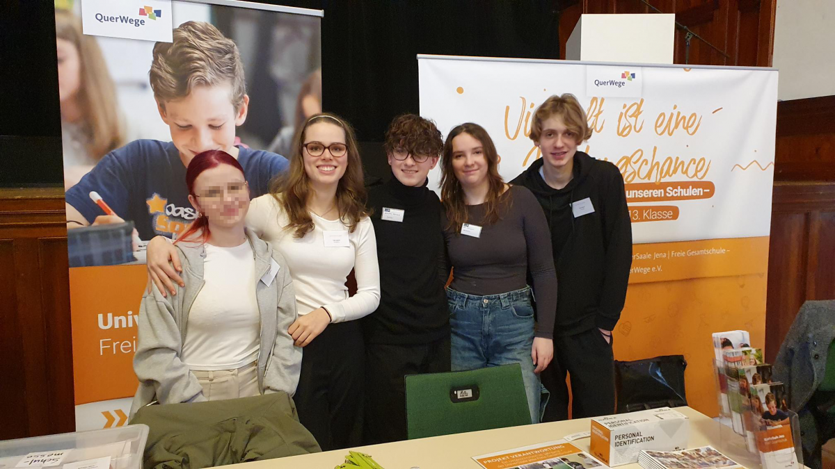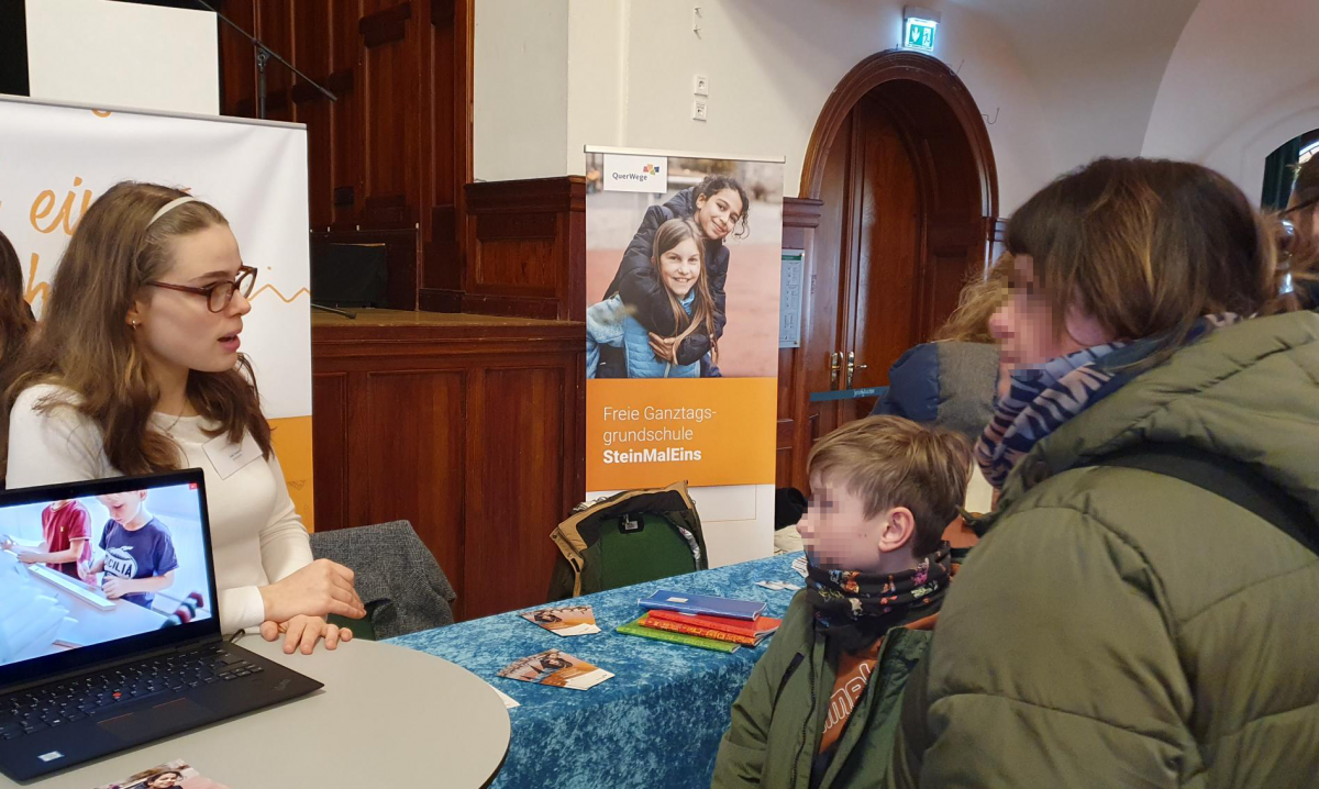 Am Samstag dem 18. Januar, stellten sich alle Jenear Schulen im Volkbad interessierten Eltern, Kindern und Großeltern vor, die auf der Suche nach der richtigen Schule sind. Unsere beiden Schulen waren mit einem gemeinsamen Stand vertreten. Die Kolleg*innen der SteinMalEins und der UniverSaale sowie 6 Schüler*innen der UniverSaale führten Nontop gute Gespräche und gaben den Besucher*innen Einblicke in den jeweiligen Schulalltag und das Konzept. Wir freuen uns darauf, viele Kinder bzw. Eltern auf unseren Info- oder Schnuppertagen wiederzusehen :)